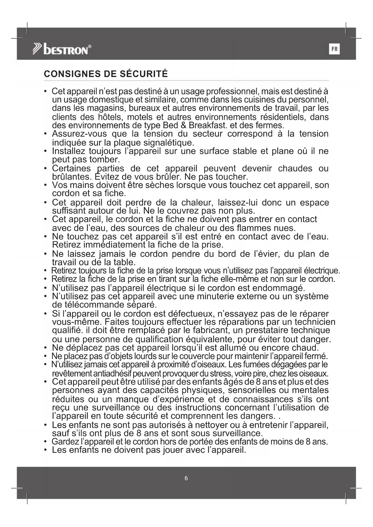 Dans le cas peu probable d'un dysfonctionnement, veuillez contacter le service client de Bestron : www.bestron.com/service