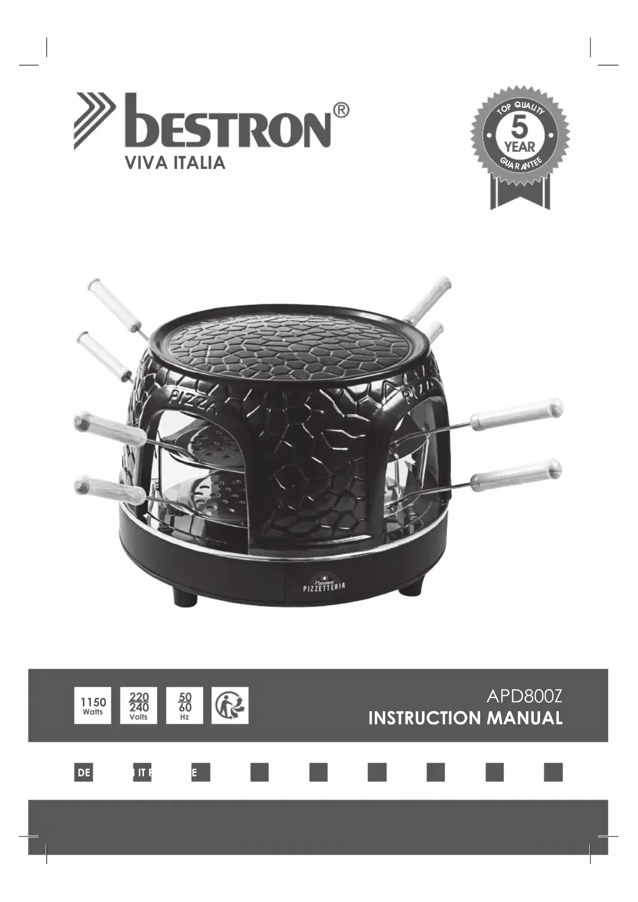 Retrouvez gratuitement la notice de l'appareil Pizzetteria APD800Z BESTRON au format PDF.