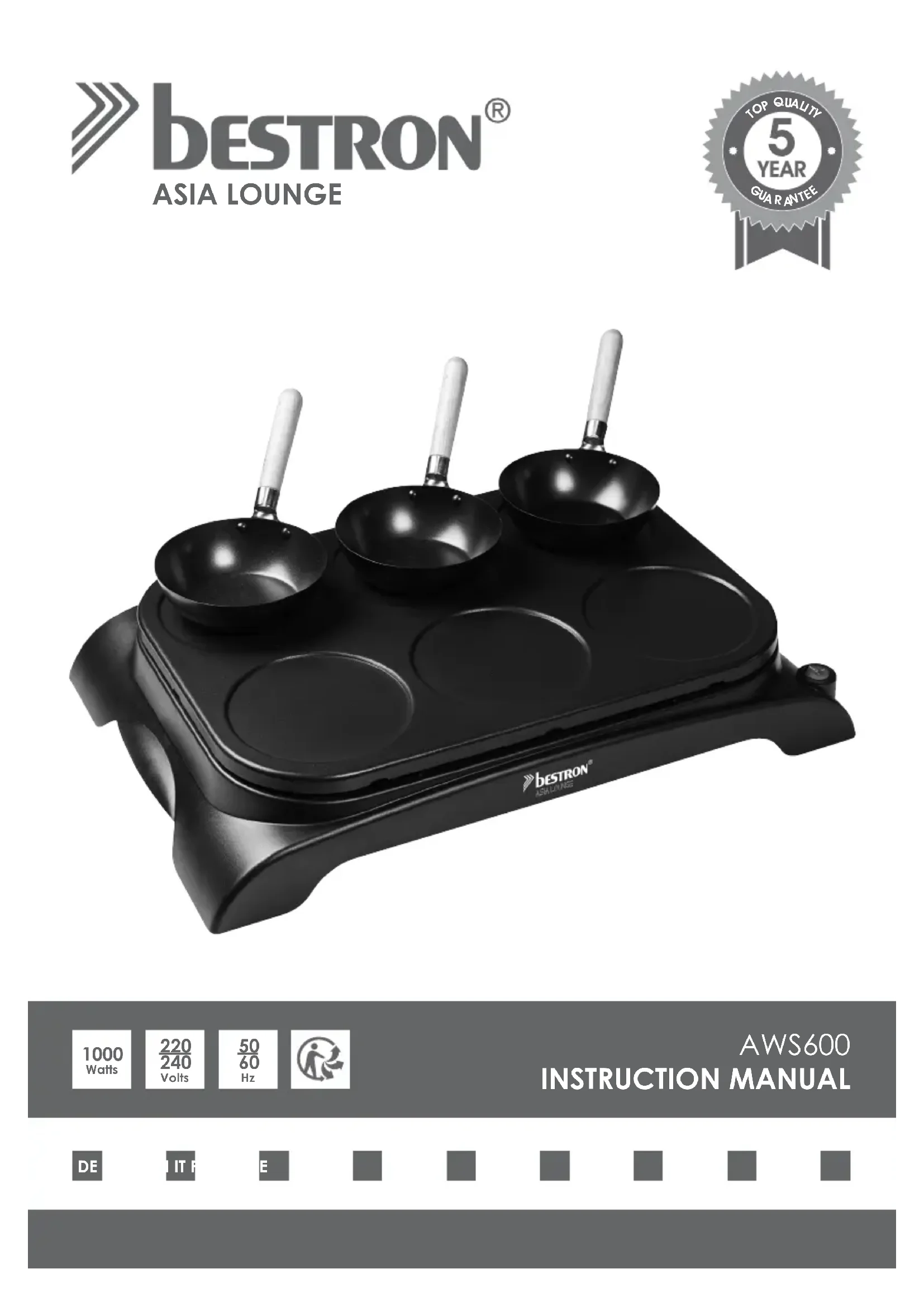 Asia Lounge AWS600 - Crépière BESTRON - Notice d'utilisation et mode d'emploi gratuit