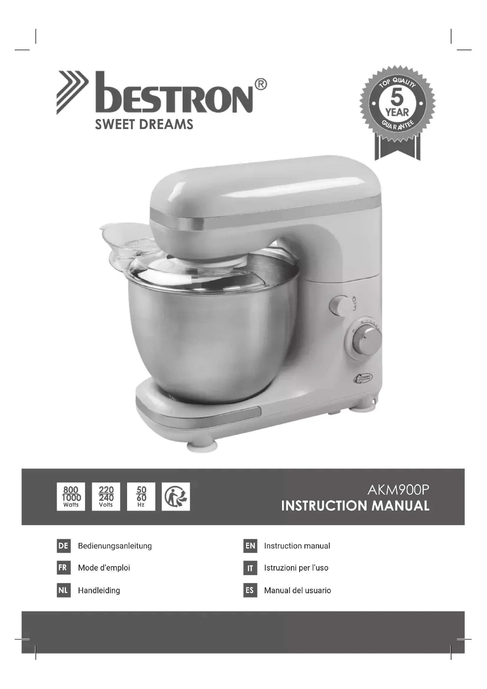 Sweet Dreams AKM900P - Robot ménager BESTRON - Notice d'utilisation et mode d'emploi gratuit