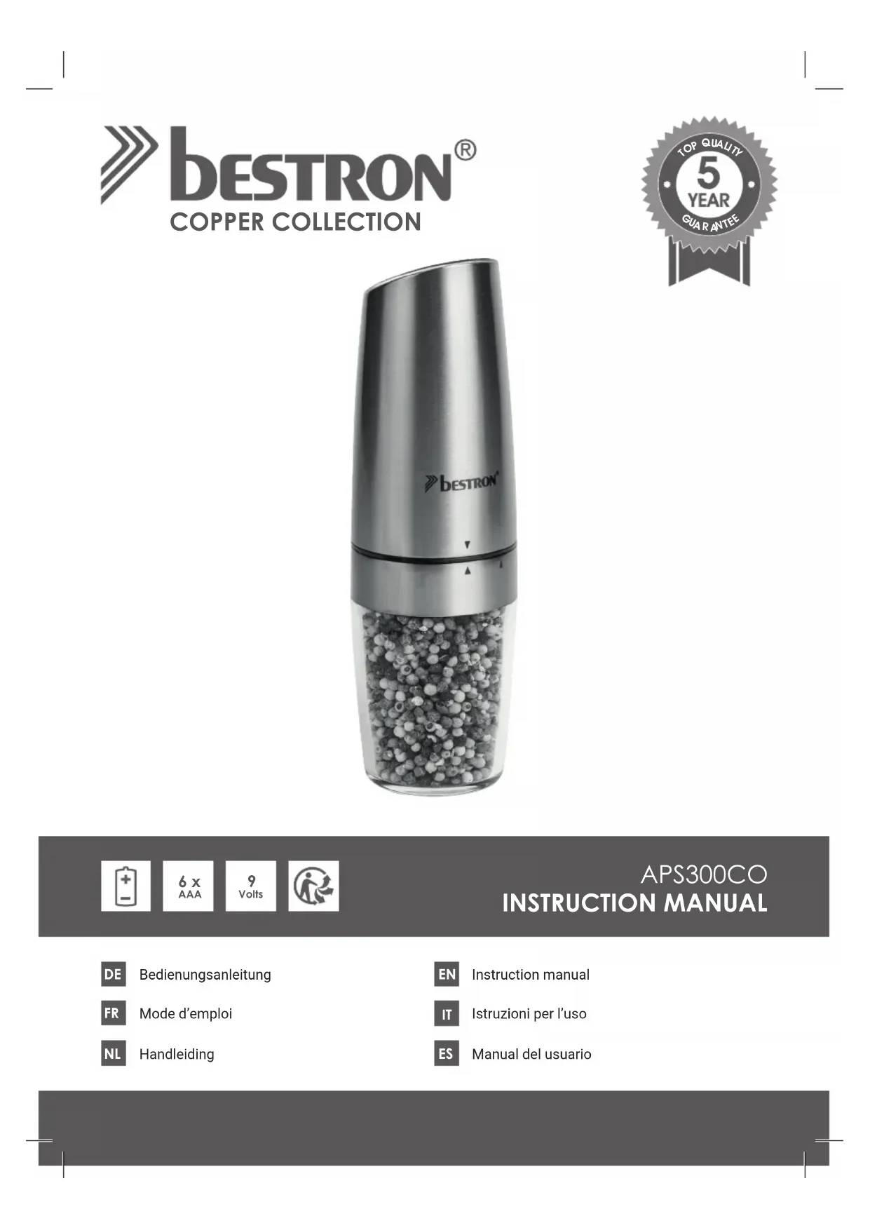 APS300CO - Moulin à sel/poivre BESTRON - Notice d'utilisation et mode d'emploi gratuit