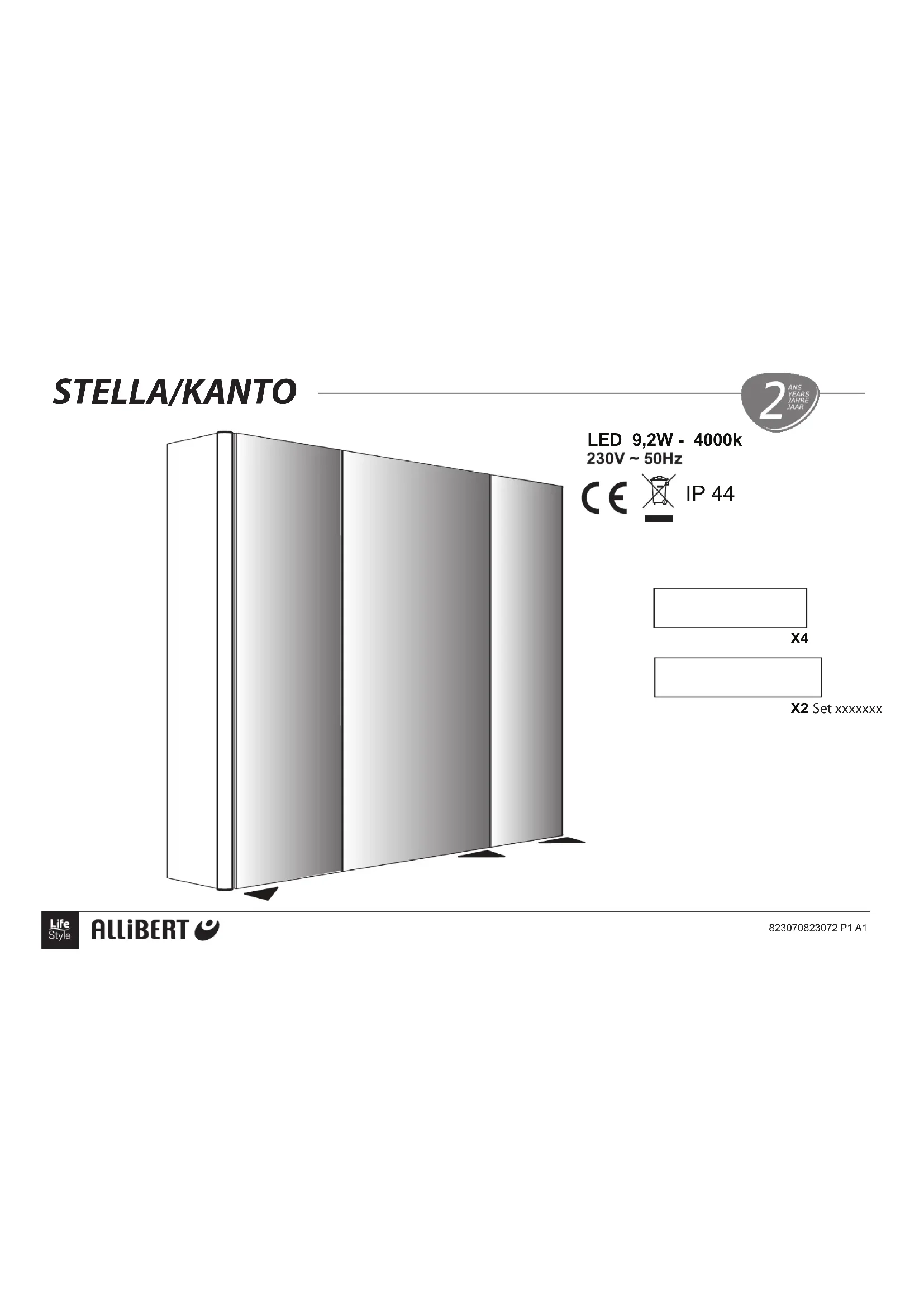Garantie Veiligheid- en onderhoudinstructies823070823072 P3 A1 Le fabricant préconise que l'installation et le branchement soient réalisés par un technicien qualifié. Avertissement : ce produit doit être installé uniquementdans le volume 3 d'une salle de bain, conformément auxexigences de la norme française d'installation électriqueNF C 15-100.Nous suggérons de contacter un éléctricien professionnelpour toute aide.Avertissement : Le shéma de la notice est donné uniquement à titre d'exemple. si la configuration présentéesur le schéma ne correspond pas à celle de votre salle debains, nous vous suggérons fortement de contacter unéléctricien professionnel pour réaliser l'installation selonla norme NF C 15-100