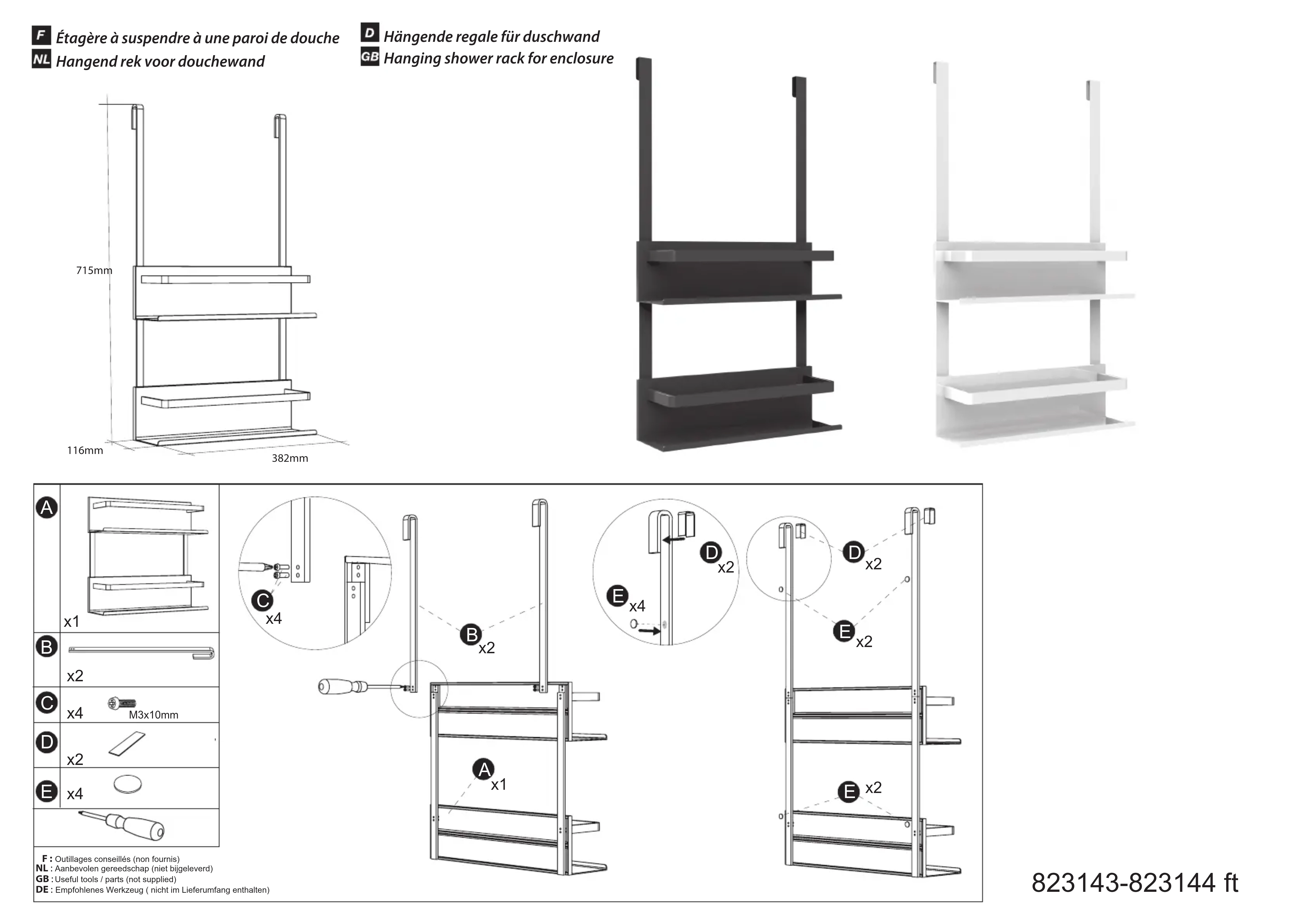 Étagère à suspendre à une paroi de douche Hangend rek voor douchewand Hanging shower rack for enclosure Hängende regale für duschwand
