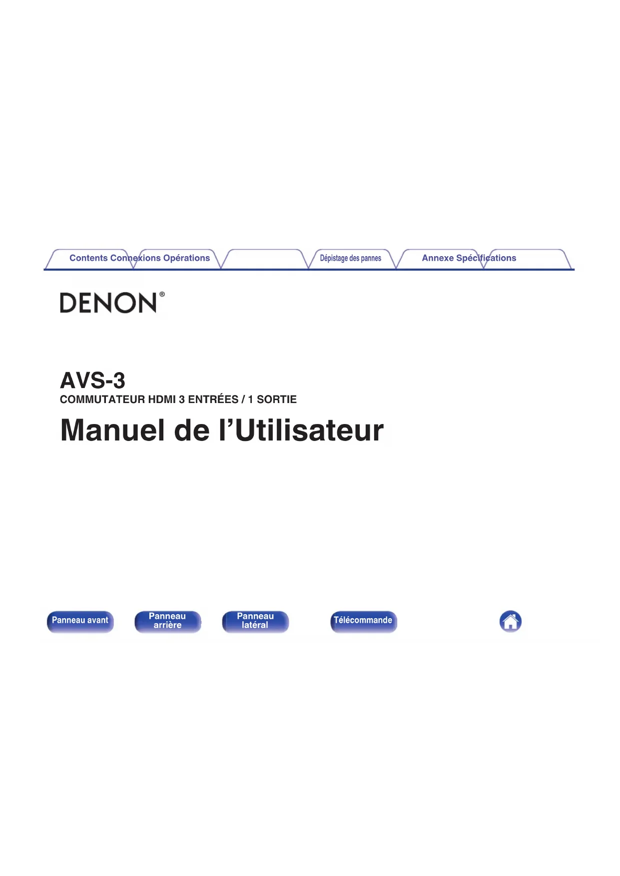 Téléchargez la notice de votre Système hifi au format PDF gratuitement ! Retrouvez votre notice AVS3 - DENON et reprennez votre appareil électronique en main. Sur cette page sont publiés tous les documents nécessaires à l'utilisation de votre appareil AVS3 de la marque DENON.