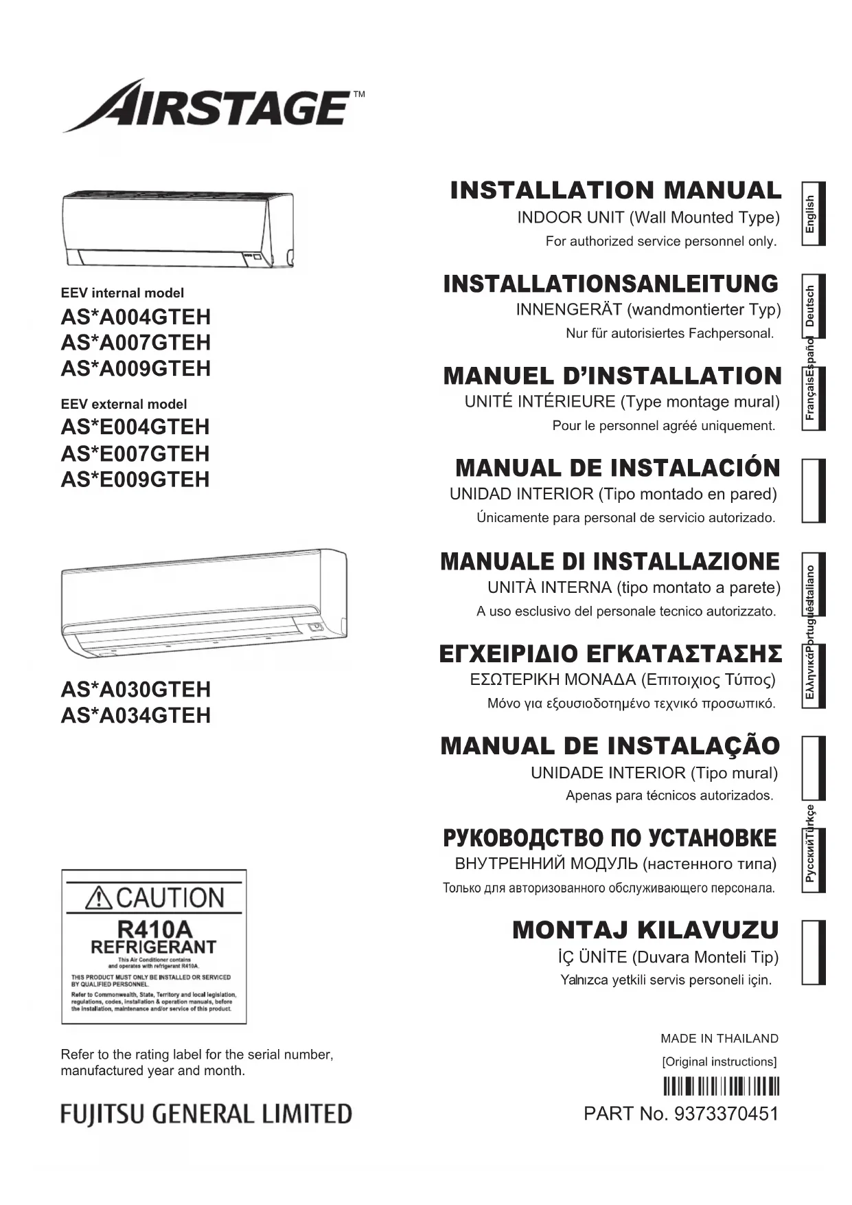 Retrouvez gratuitement la notice de l'appareil Airstage ASHA004GTEH FUJITSU au format PDF.