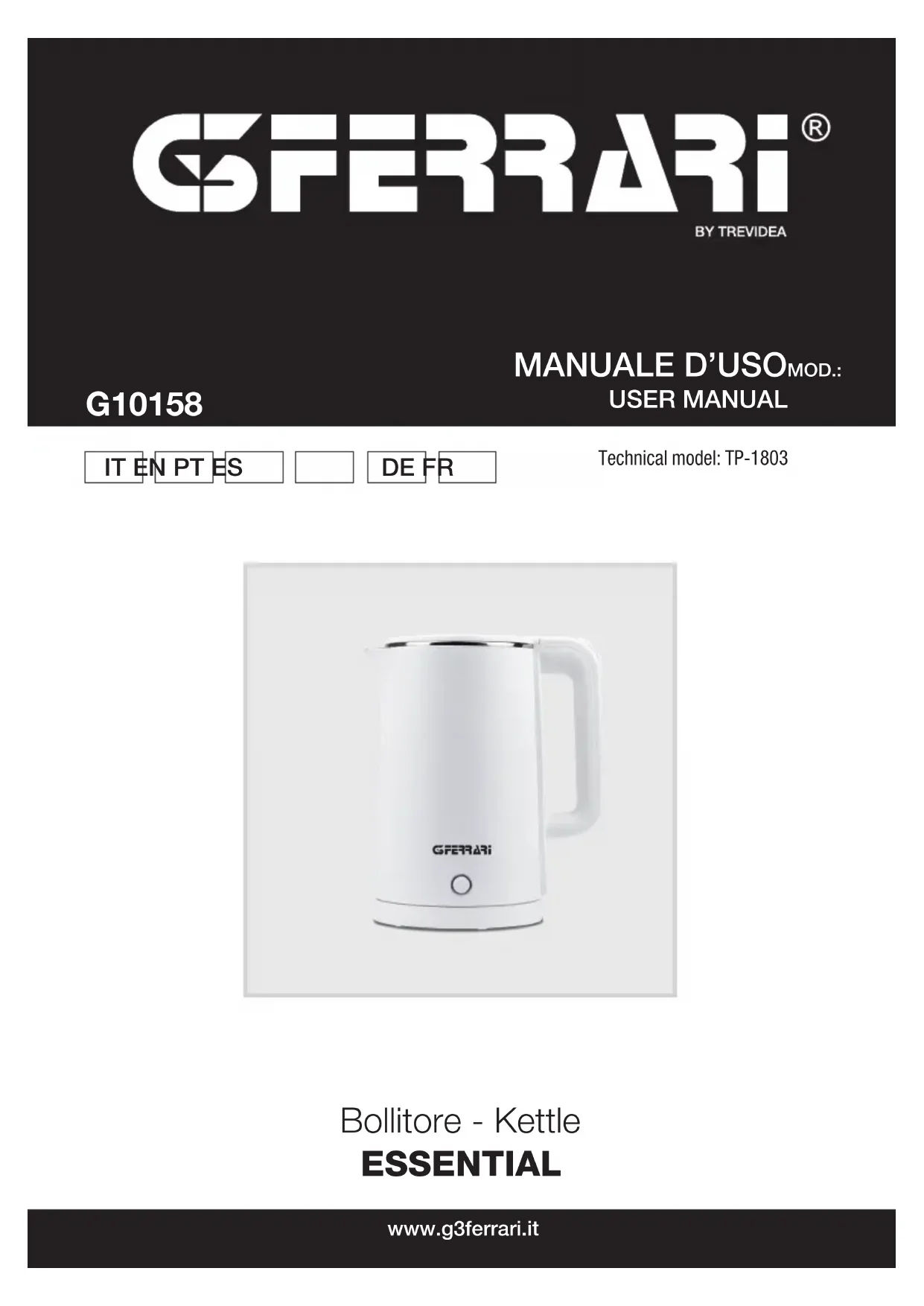 Essential G10158 - Bouilloire G3 Ferrari - Notice d'utilisation et mode d'emploi gratuit