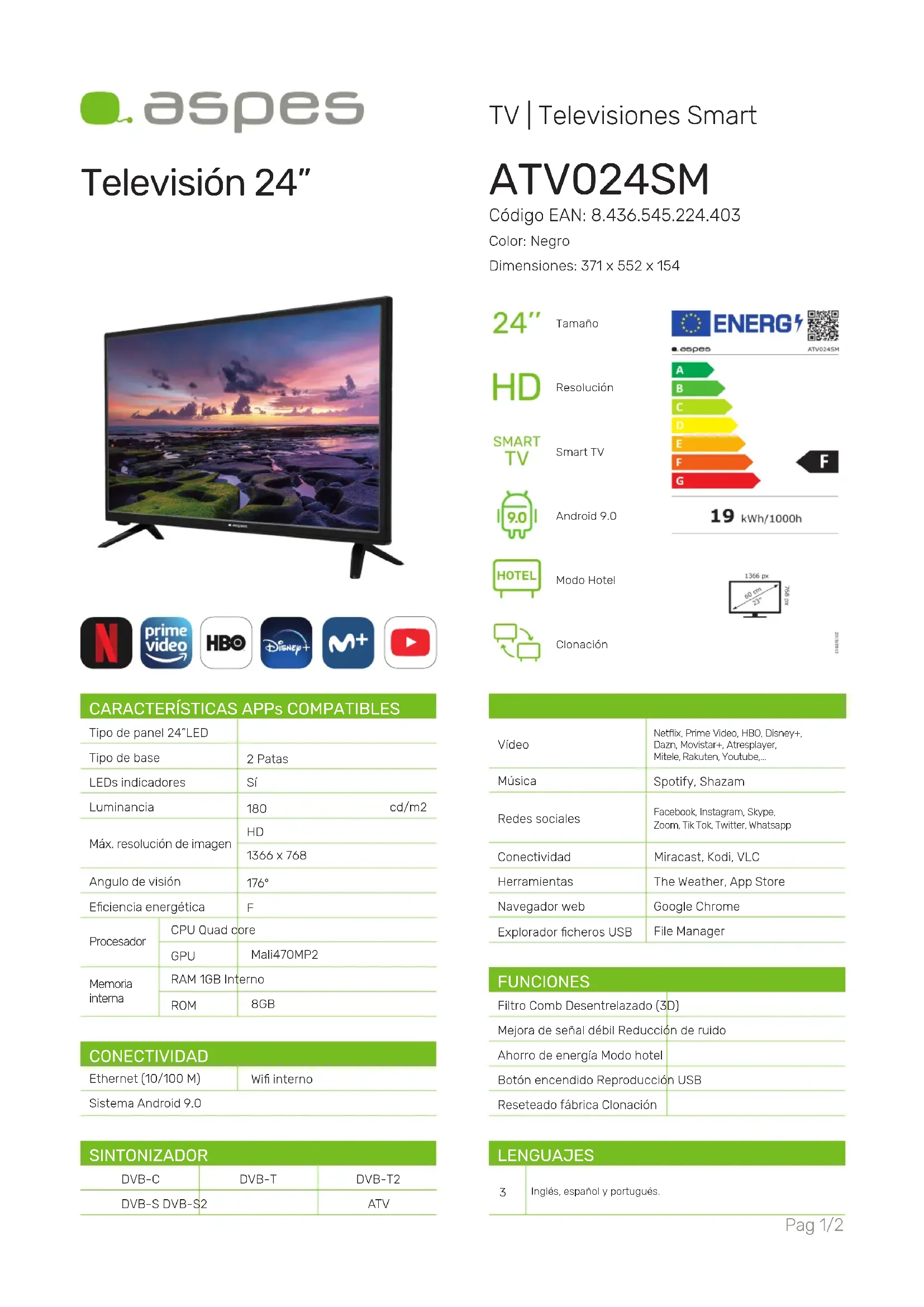 ATV024SM - Téléviseur ASPES - Notice d'utilisation et mode d'emploi gratuit