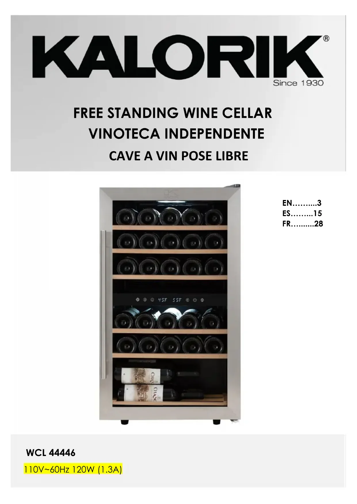 Retrouvez gratuitement la notice de l'appareil WCL 44446 KALORIK au format PDF.