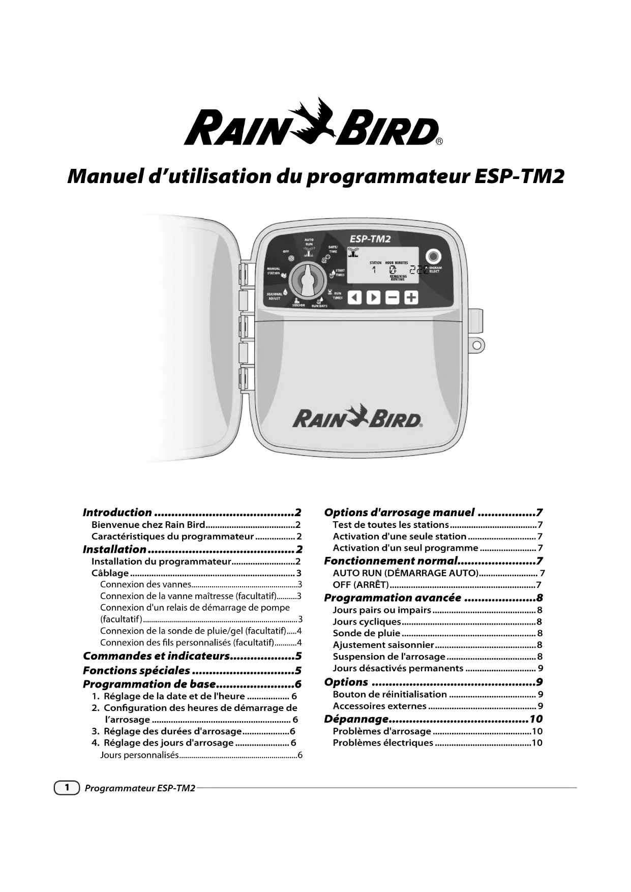 Rain+Birdt Manuel d’utilisation du programmateur ESP-TM2