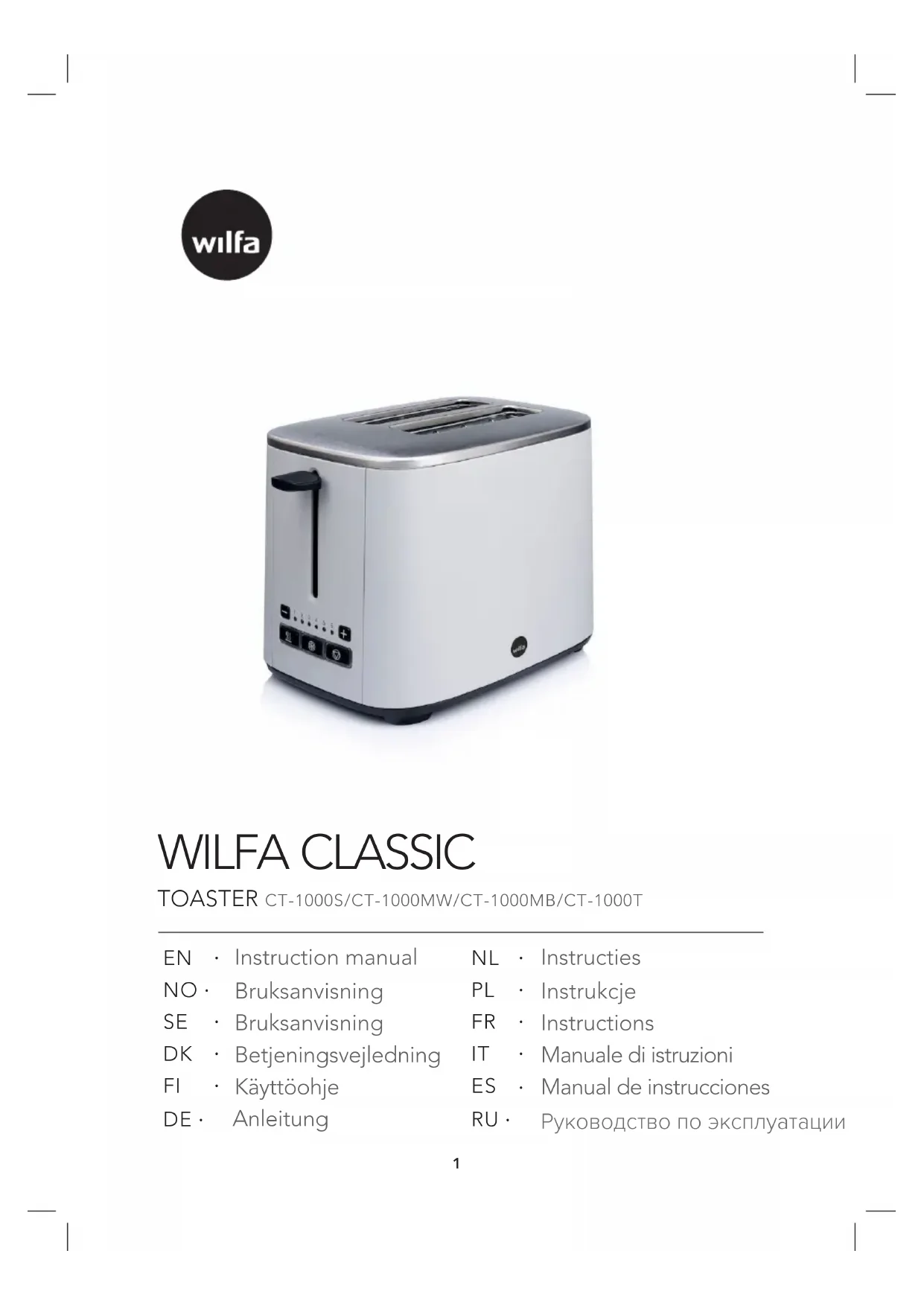 Retrouvez gratuitement la notice de l'appareil Classic CT1000T WILFA au format PDF.