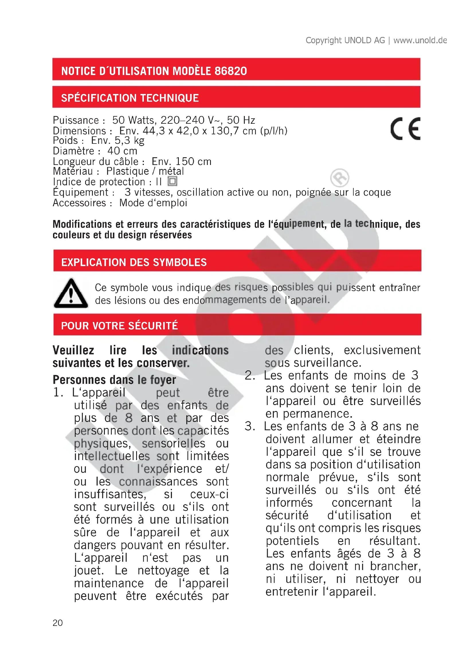 Silverline 86820 - Ventilateur UNOLD - Notice d'utilisation et mode d'emploi gratuit