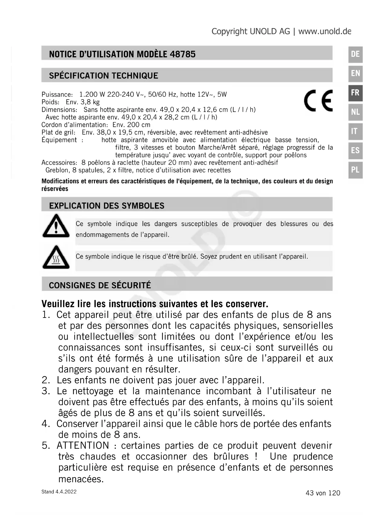 MODE D'EMPLOI Smokeless 48785 UNOLD