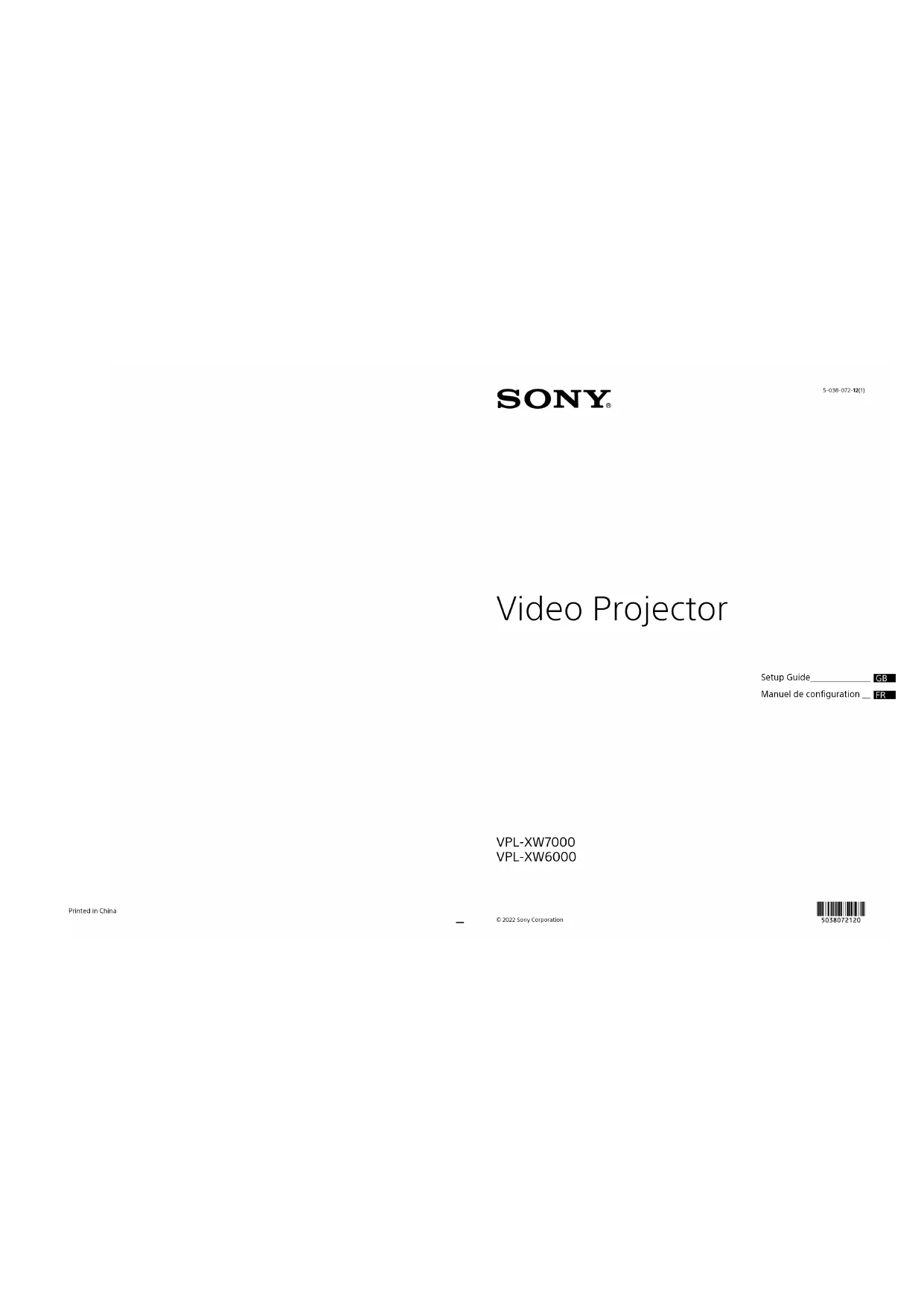 Le Manuel de configuration décrit l’installation et les procédures de base de projection des images.Avant d’utiliser l’appareil, veuillez lire attentivement ce manuel et le conserver pour future référence. Reportez-vous à la section « À propos des indicateurs », le cas échéant. Pour plus d’informations sur l’utilisation, reportez-vous au Guide d’aide (Mode d’emploi en ligne). À propos de ce manuel Préparation ...............................................................Page 25 Installation de l’appareil ..........................................Page 26 Raccordement de l’appareil ......................................Page 28 Projection ..................................................................Page 29 À propos des indicateurs...........................................................................Page 31 Dimensions............................................................................................... Page 32 Étape 1 Étape 2 Étape 3 Étape 4 Manuels fournis Manuel de configuration (ce document)Décrit l’installation et les procédures de base de projection des images.Guide d’aide (Mode d’emploi en ligne)Décrit les fonctionnalités de l’appareil et leur utilisation détaillée. Vous pouvez afficher le Guide d’aide sur un smartphone ou un ordinateur.https://rd1.sony.net/help/vpl/xw5000/fr/19