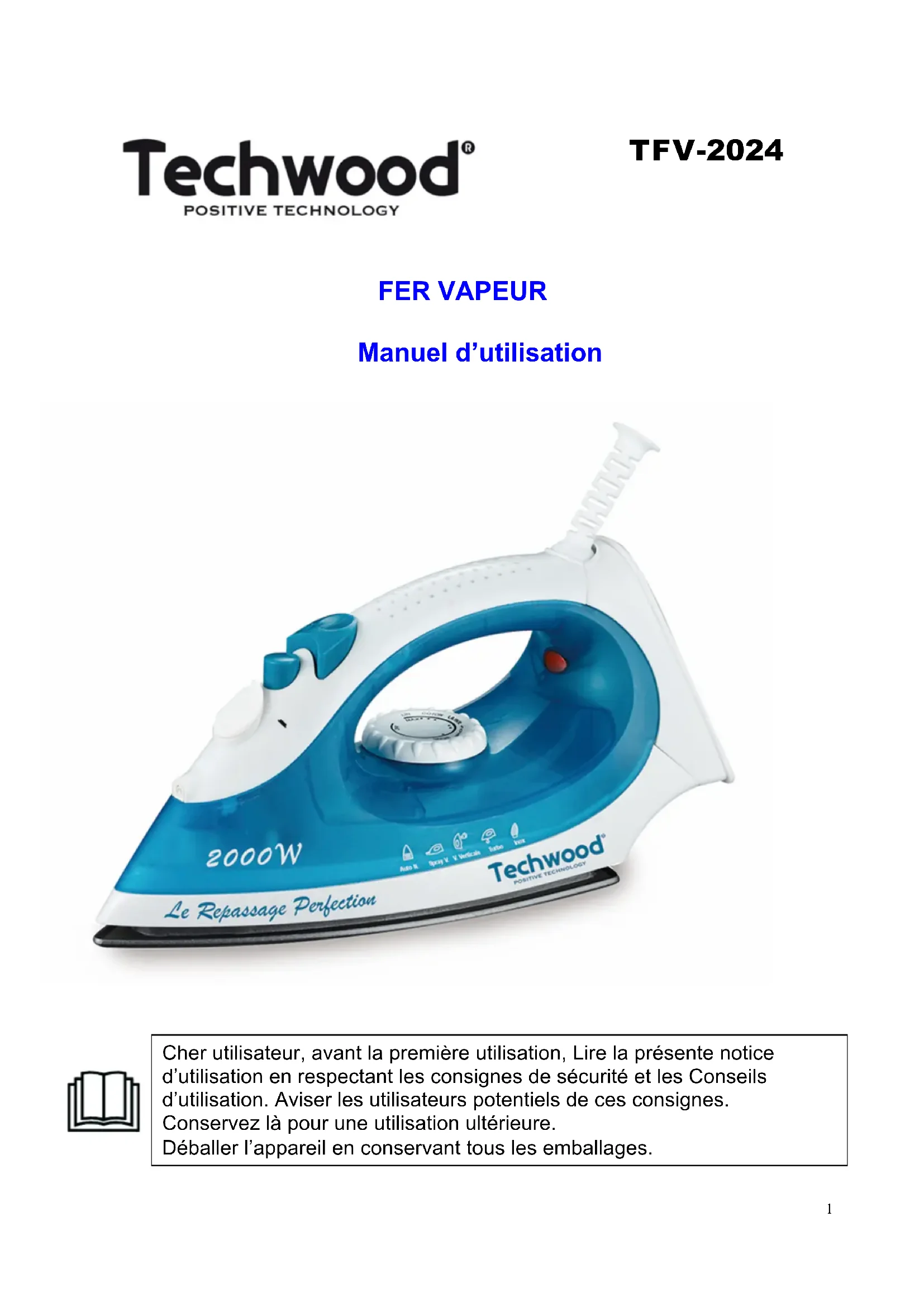 TFV2405C - Fer à repasser TECHWOOD - Notice d'utilisation et mode d'emploi gratuit