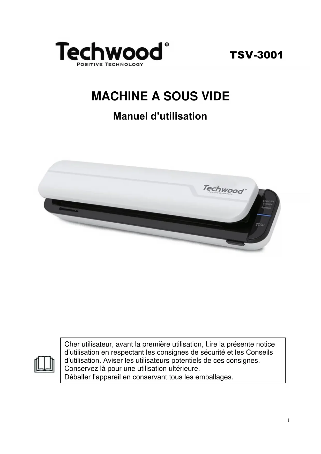 TSV3001 - Appareils à emballage sous vide TECHWOOD - Notice d'utilisation et mode d'emploi gratuit