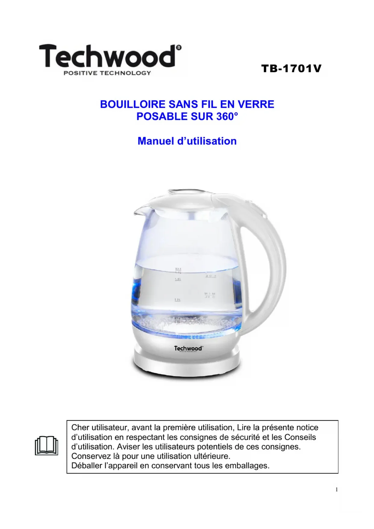TB1717V - Bouilloire TECHWOOD - Notice d'utilisation et mode d'emploi gratuit