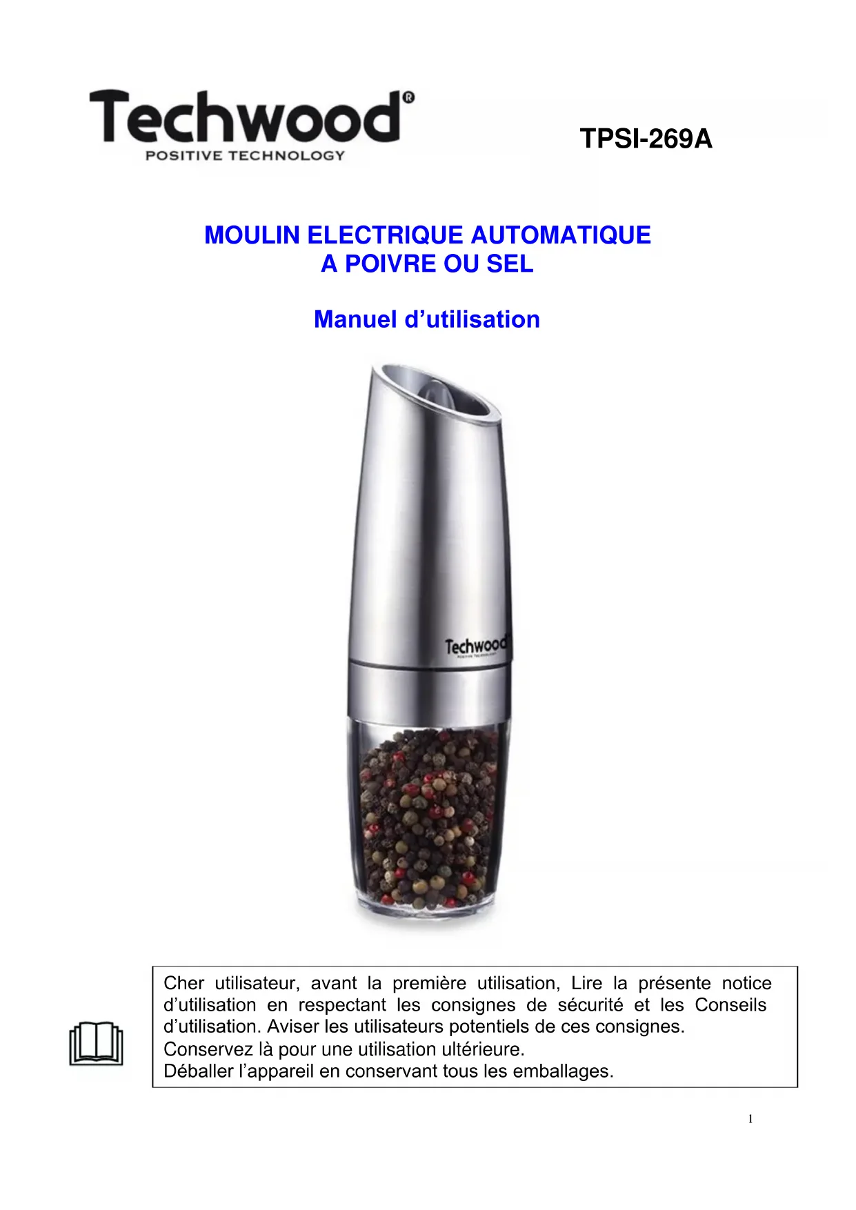 TPSI269A - Moulin à sel/poivre TECHWOOD - Notice d'utilisation et mode d'emploi gratuit