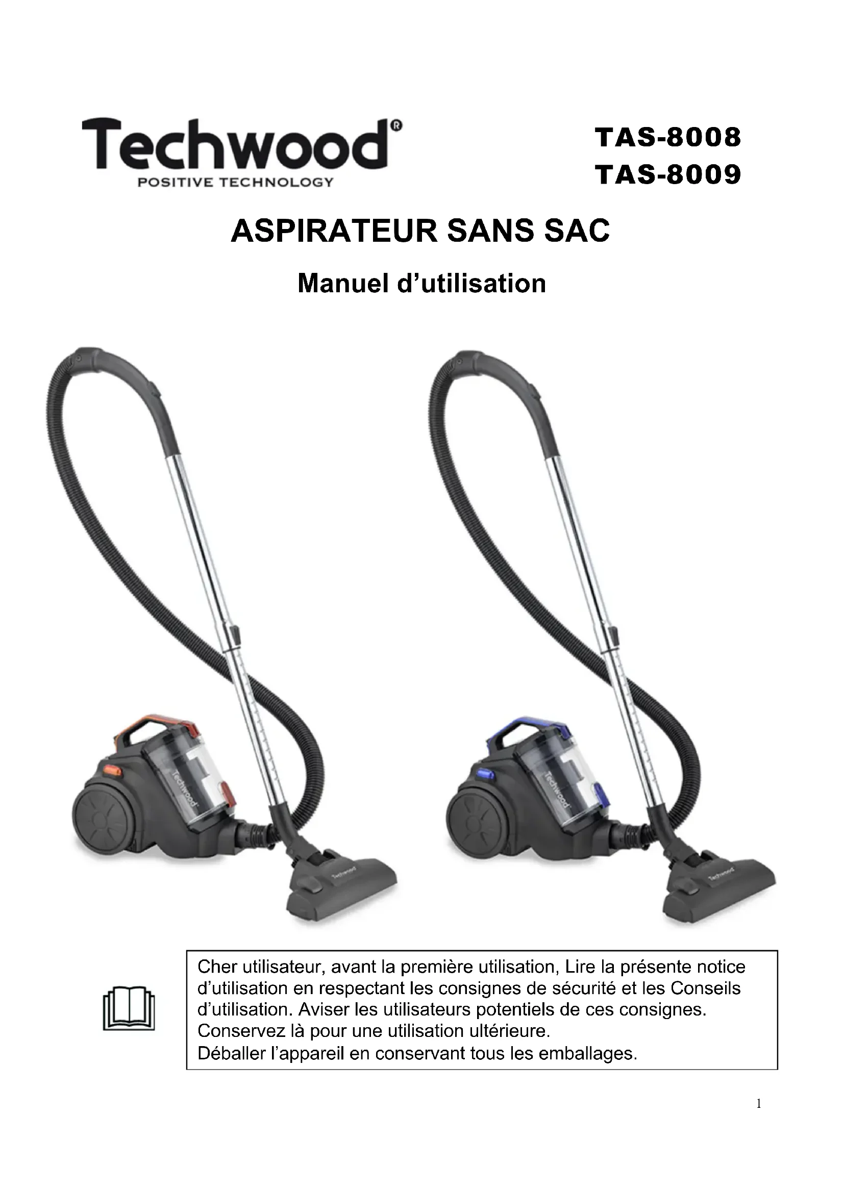 TAS8009 - Aspirateur TECHWOOD - Notice d'utilisation et mode d'emploi gratuit