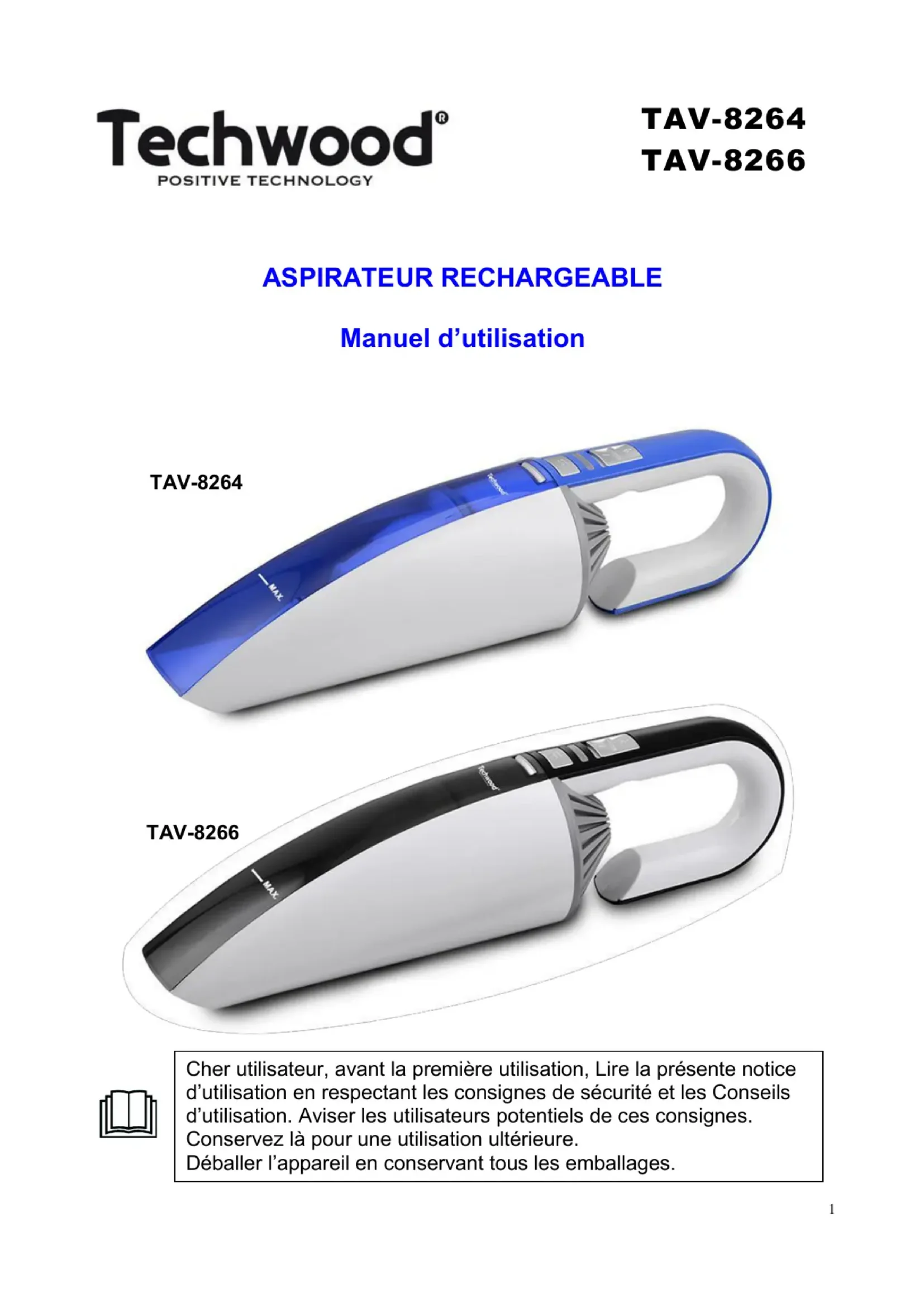 Cher utilisateur, avant la première utilisation, Lire la présente notice d’utilisation en respectant les consignes de sécurité et les Conseils d’utilisation. Aviser les utilisateurs potentiels de ces consignes. Conservez là pour une utilisation ultérieure. Déballer l’appareil en conservant tous les emballages. TAV-8264 TAV-82662