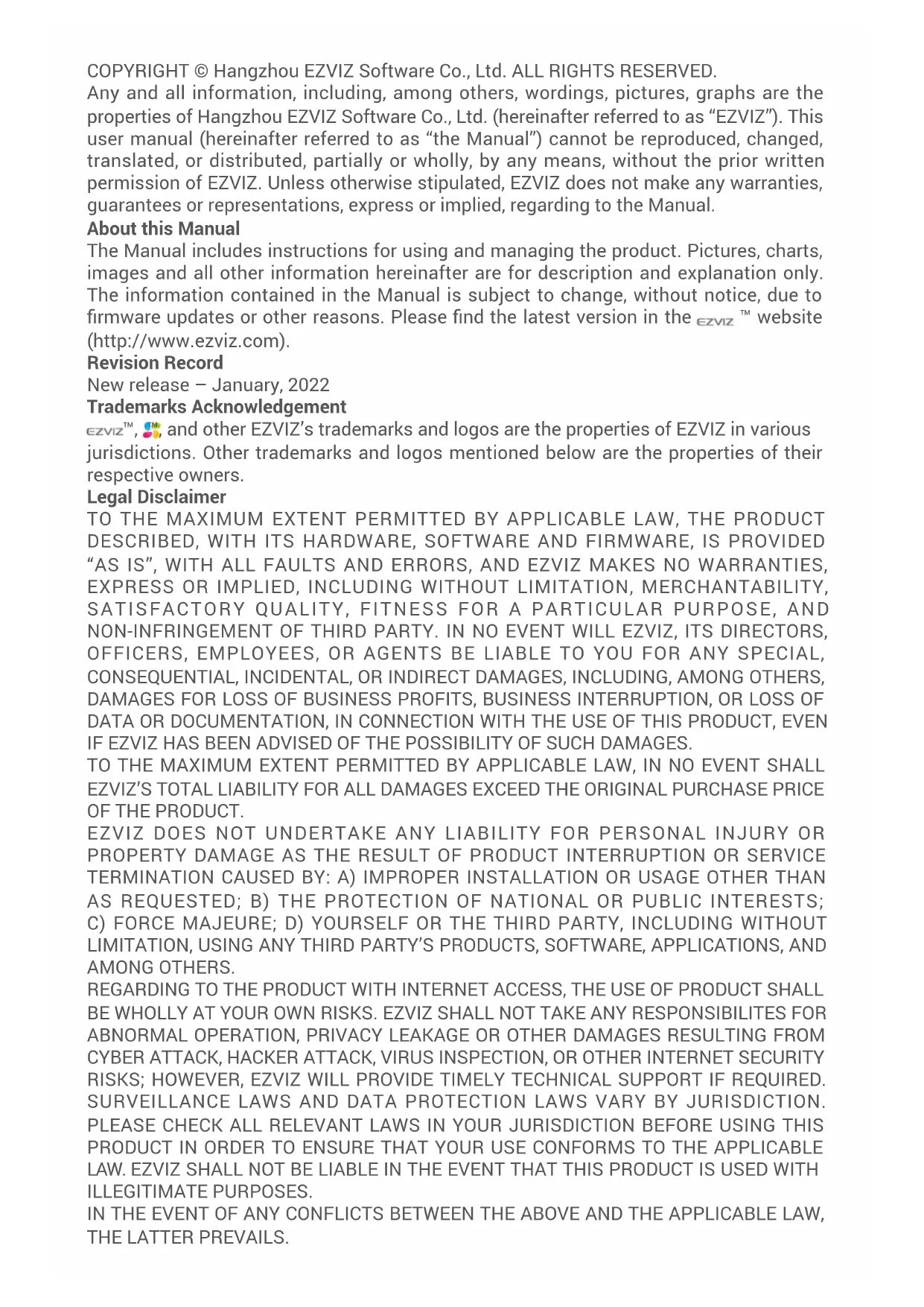 Retrouvez gratuitement la notice de l'appareil RH1 EZVIZ au format PDF.