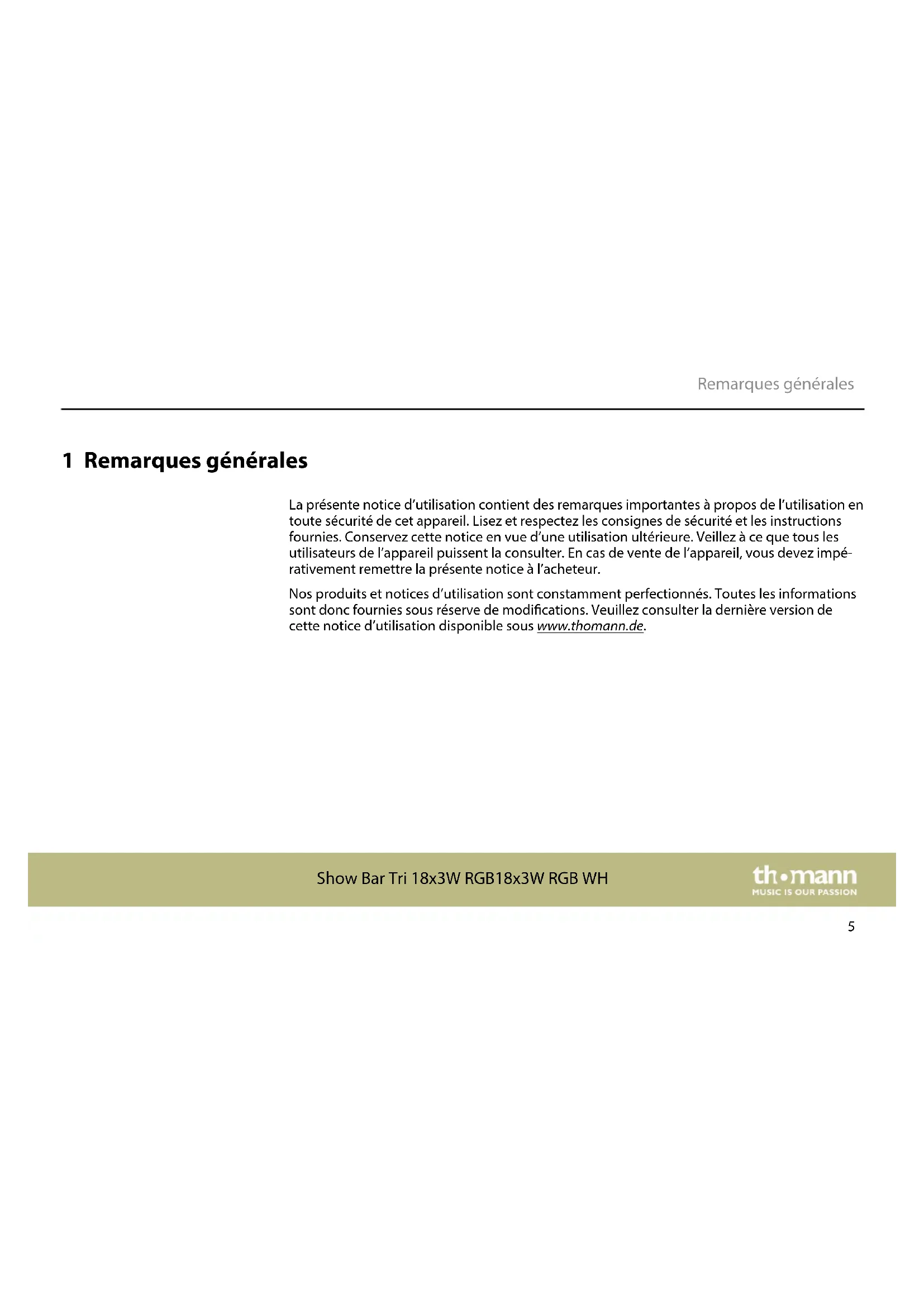 Show Bar Tri 18x3W RGB 18x3W RGB WH projecteur à LED notice d'utilisationMusikhaus Thomann Thomann GmbH Hans-Thomann-Straße 1 96138 Burgebrach Allemagne Téléphone : +49 (0) 9546 9223-0 Courriel : info@thomann.de Internet : www.thomann.de