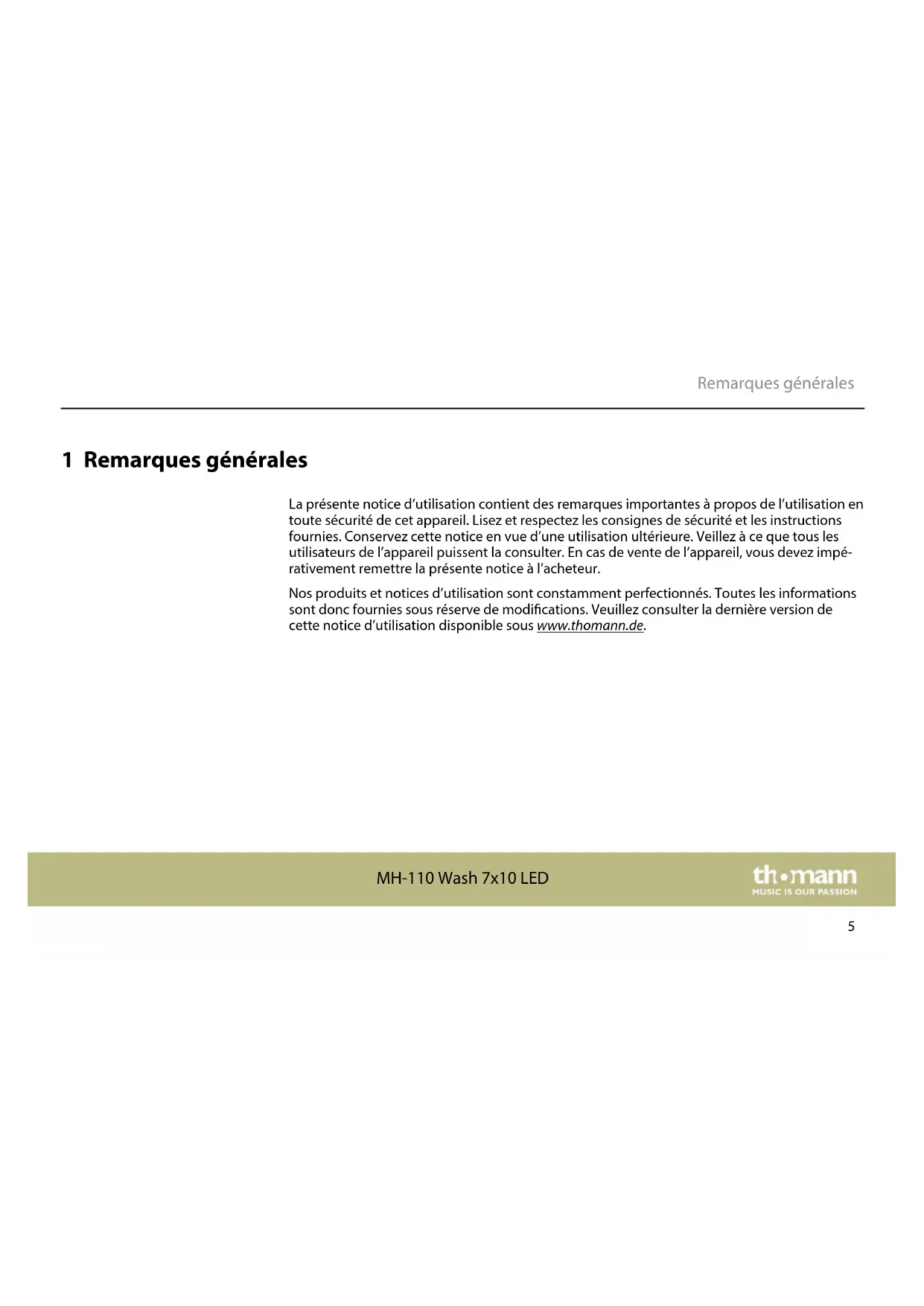 Sur notre site (www.thomann.de) vous trouverez beaucoup plus d'informations et de détails sur les points suivants : Téléchargement Cette notice d'utilisation est également disponible sous forme de chier PDF à télécharger. Recherche par mot- clé Utilisez dans la version électronique la fonction de recherche pour trouver rapidement les sujets qui vous intéressent. Guides en ligne Nos guides en ligne fournissent des informations détaillées sur les bases et termes techniques. Conseils personnalisés Pour obtenir des conseils, veuillez contacter notre hotline technique. Service Si vous avez des problèmes avec l'appareil, notre service clients sera heureux de vous aider. Remarques générales