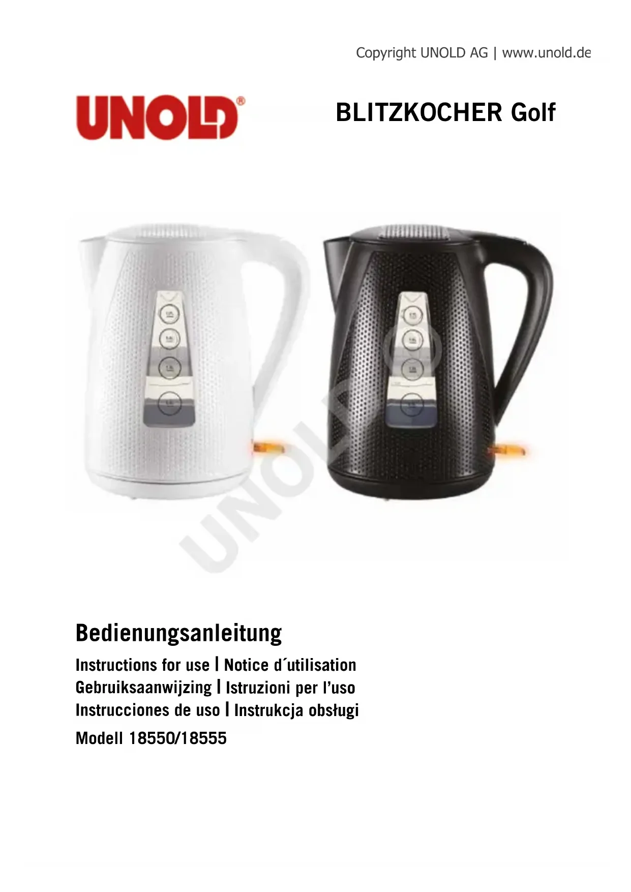 Golf 18550 - Bouilloire UNOLD - Notice d'utilisation et mode d'emploi gratuit