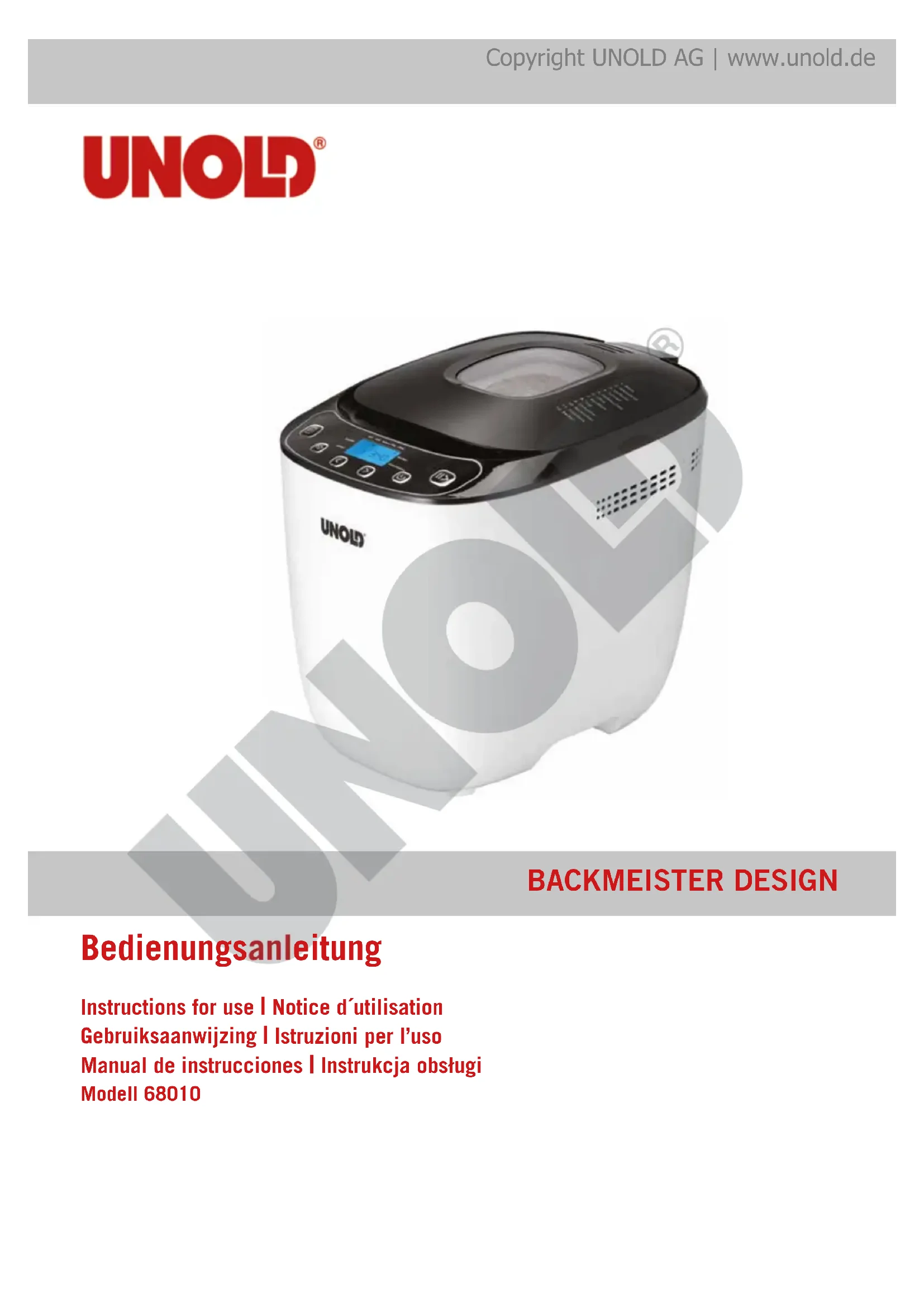 Retrouvez gratuitement la notice de l'appareil Backmeister Design 68010 UNOLD au format PDF.