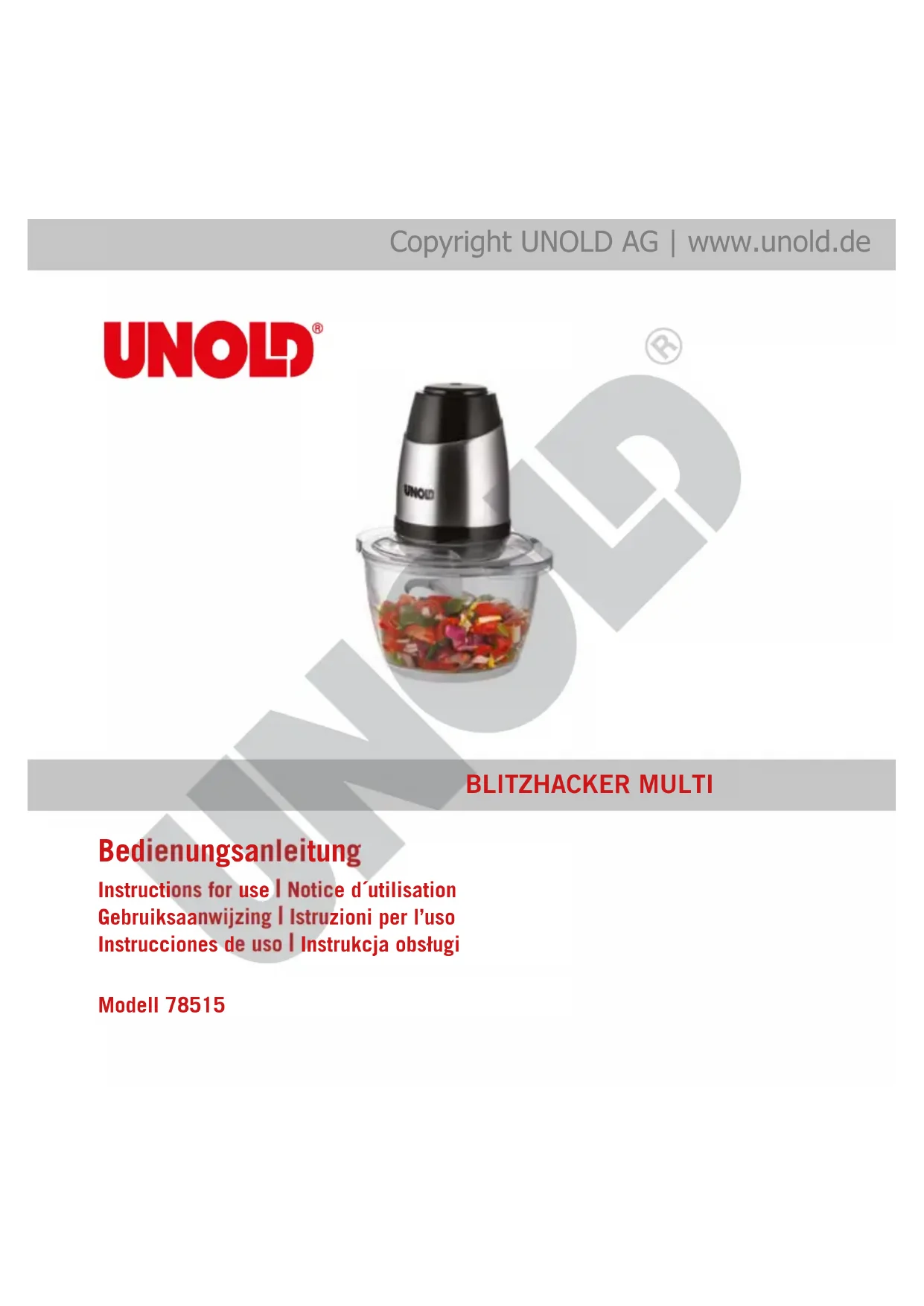 Retrouvez gratuitement la notice de l'appareil Multi 78515 UNOLD au format PDF.