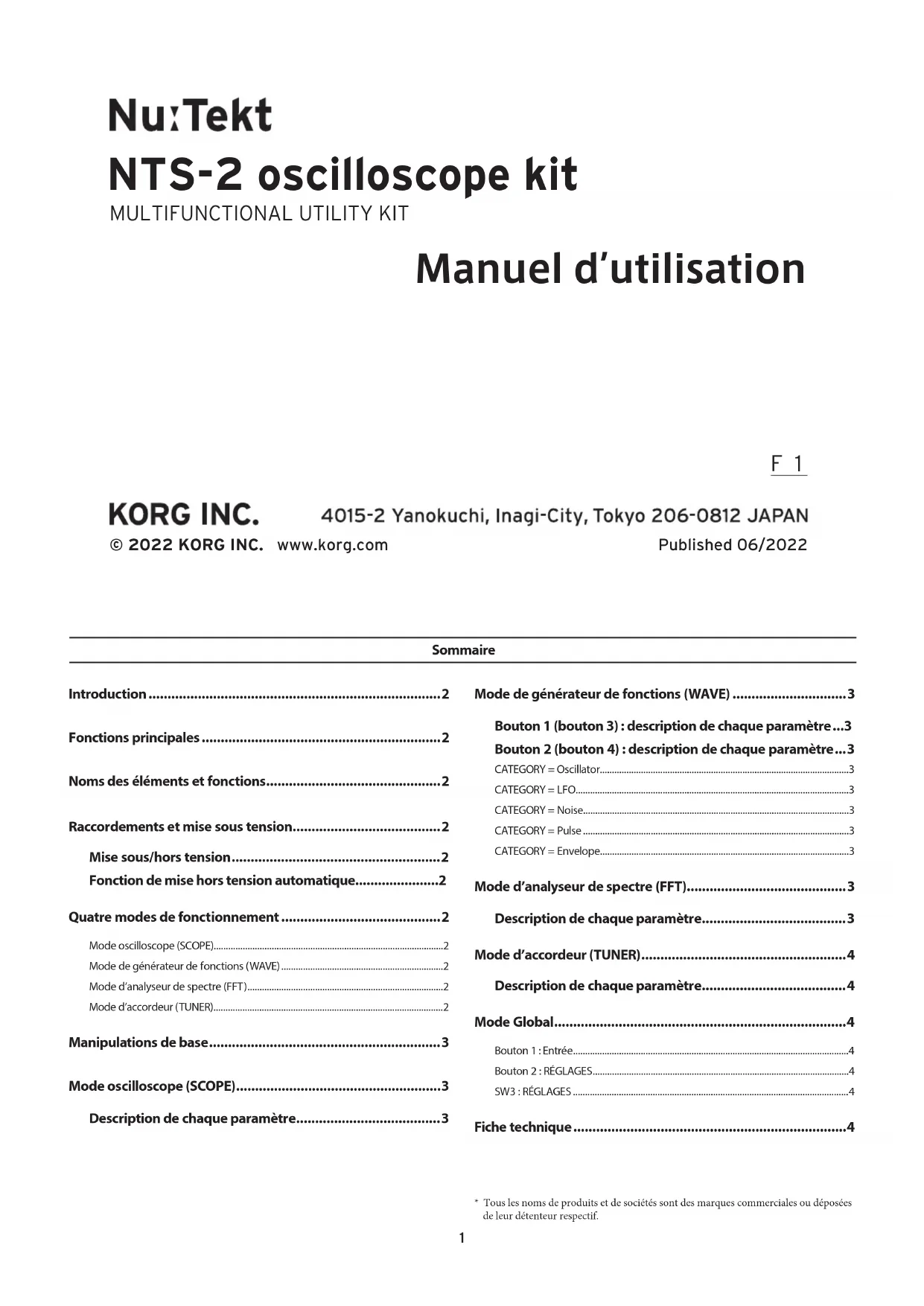 MODE D'EMPLOI NTS2 oscilloscope kit KORG