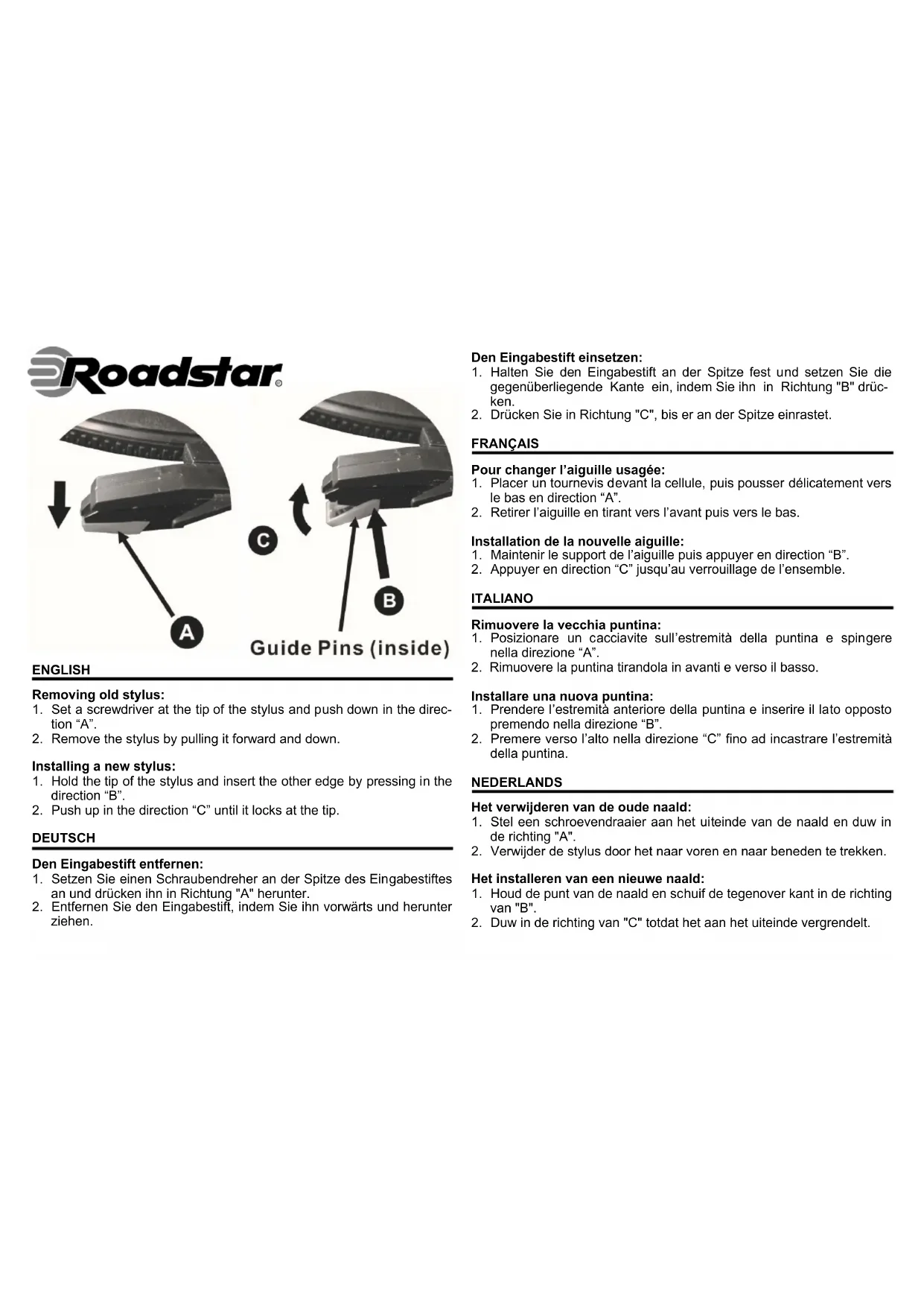 Retrouvez gratuitement la notice de l'appareil NEEDLE1 ROADSTAR au format PDF.