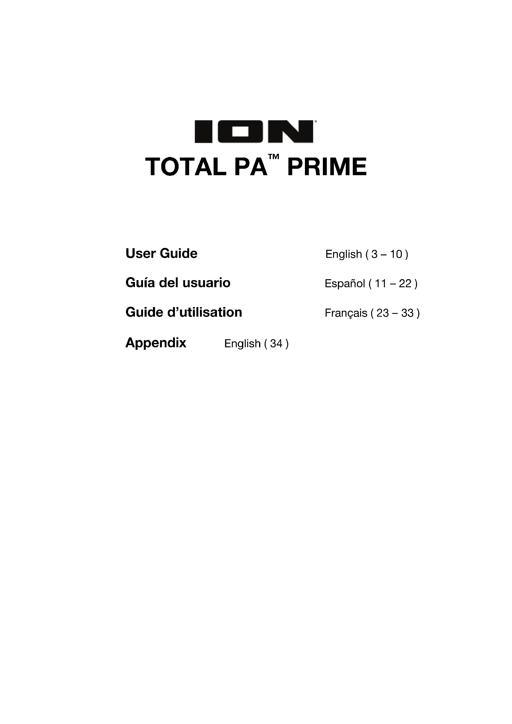 Total PA Prime - Haut-parleur ION - Notice d'utilisation et mode d'emploi gratuit