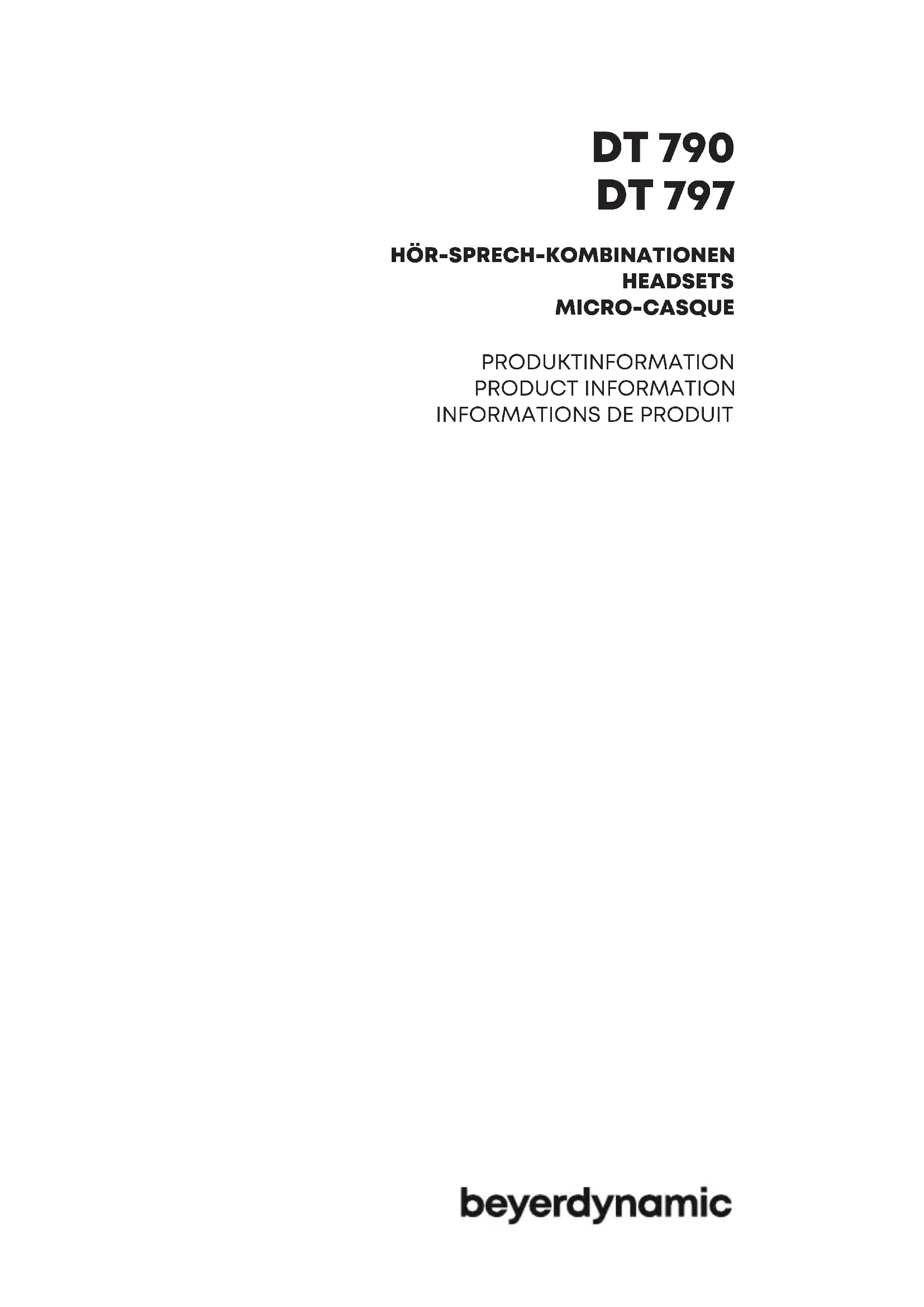 Vous avez opté pour le micro-casque DT 790 / DT 797 de beyerdynamic. Nous vous remercions de votre confiance. Veuillez prendre le temps de lire attentivement ces informations produit avant la mise en service de l’appareil.