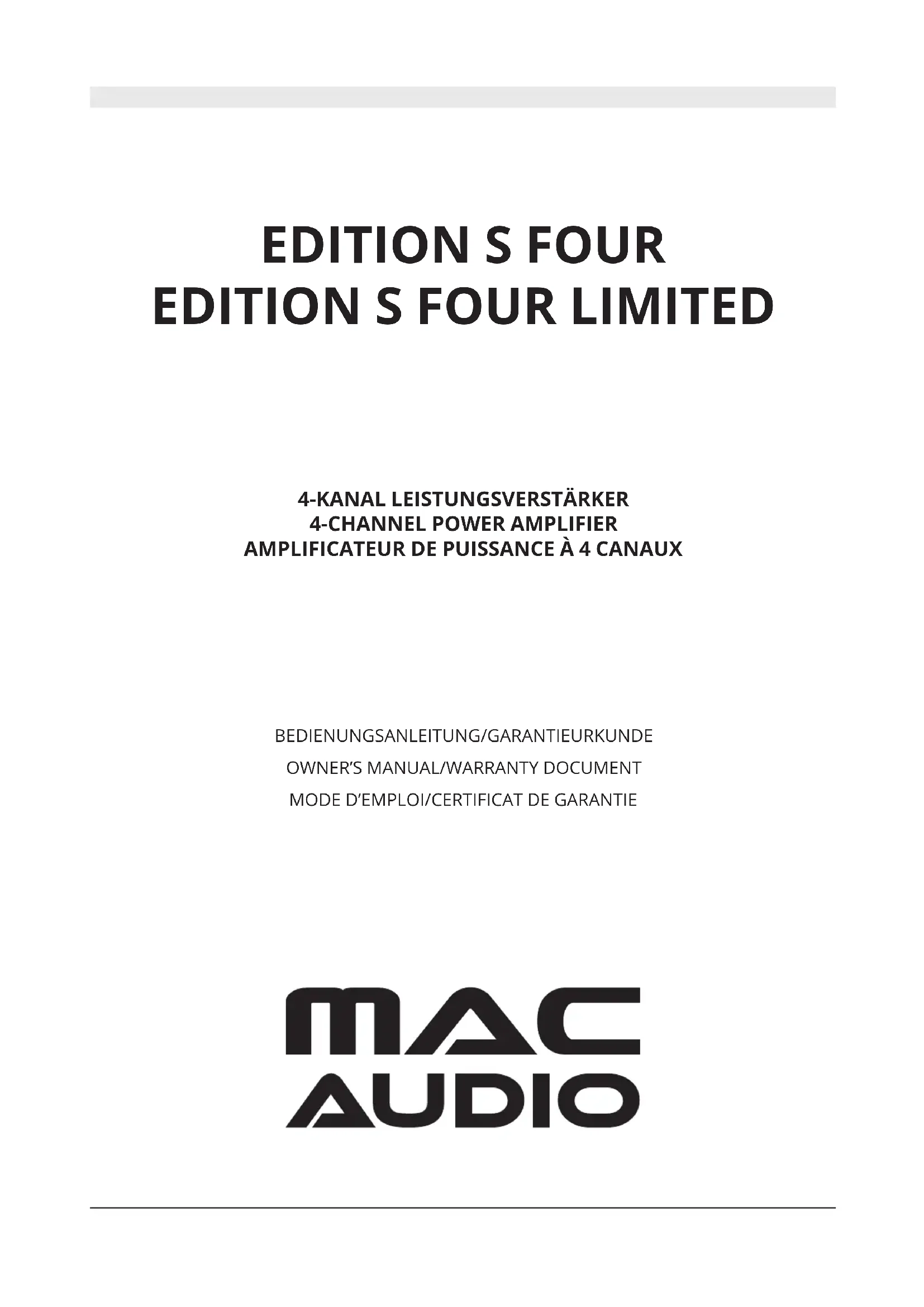 Retrouvez gratuitement la notice de l'appareil Edition S Four LTD. MAC AUDIO au format PDF.