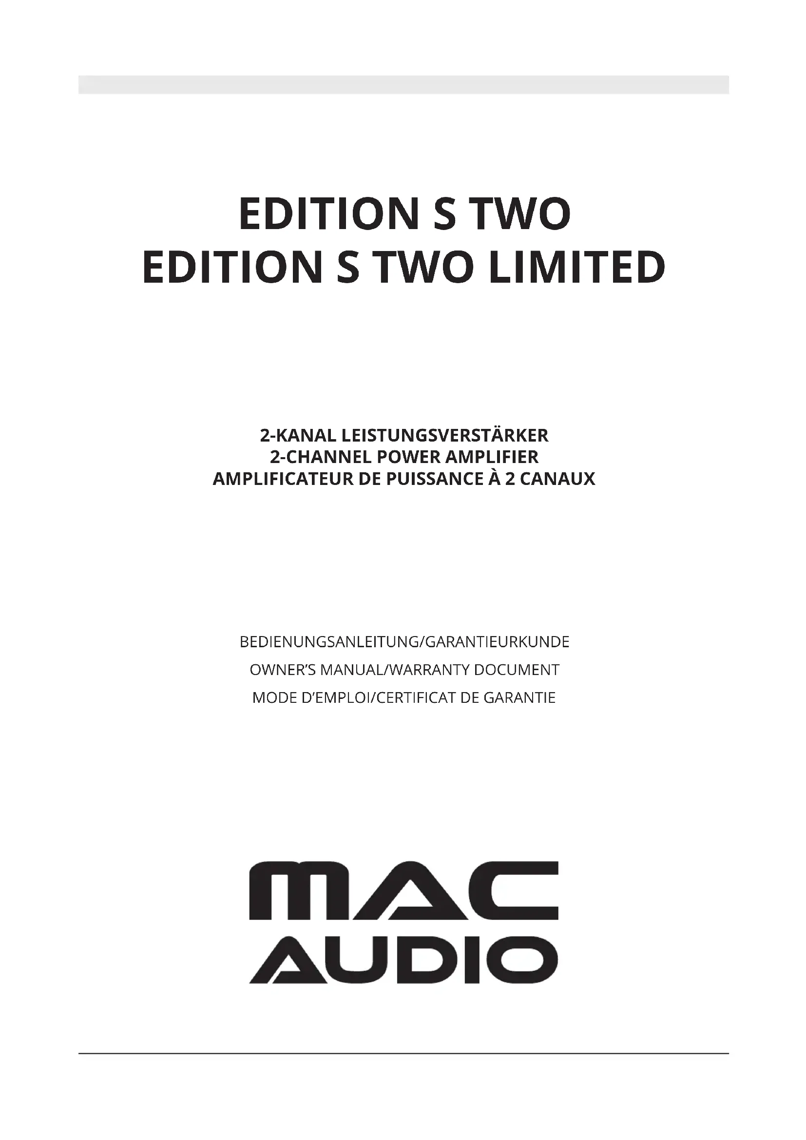 Retrouvez gratuitement la notice de l'appareil Edition S Two MAC AUDIO au format PDF.