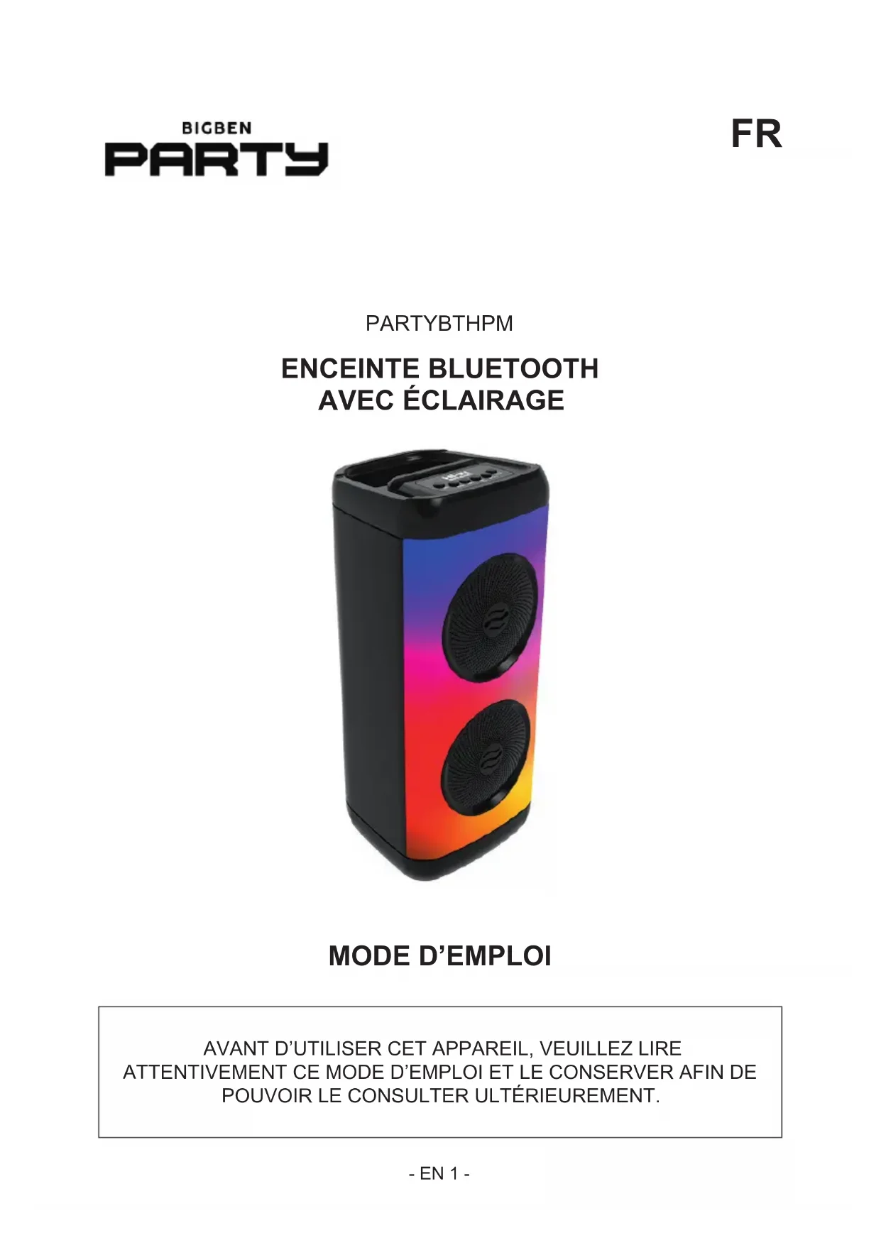 MODE D'EMPLOI PARTYBTHPM BIGBEN
