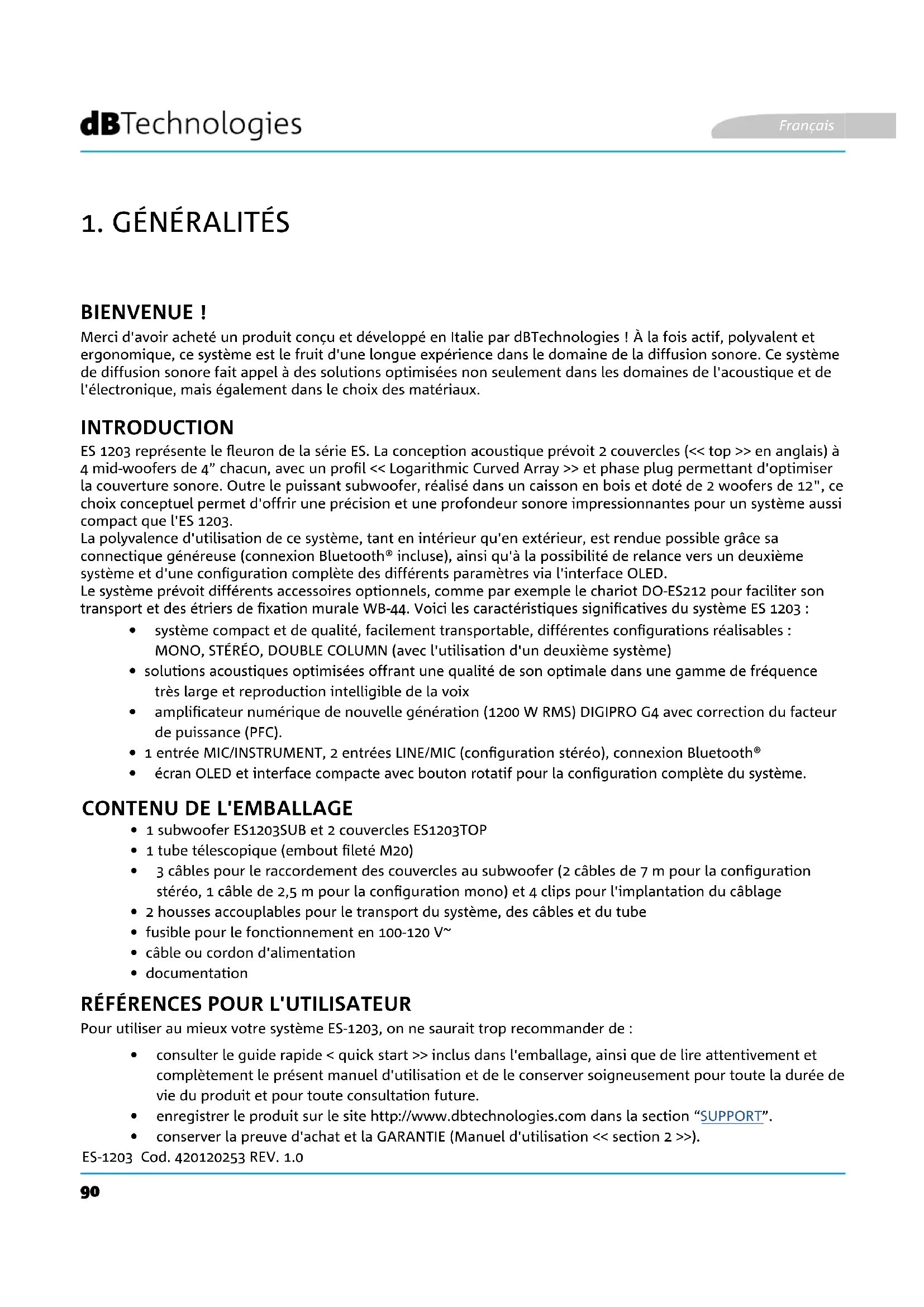 Retrouvez gratuitement la notice de l'appareil es1203 DB Technologies au format PDF.