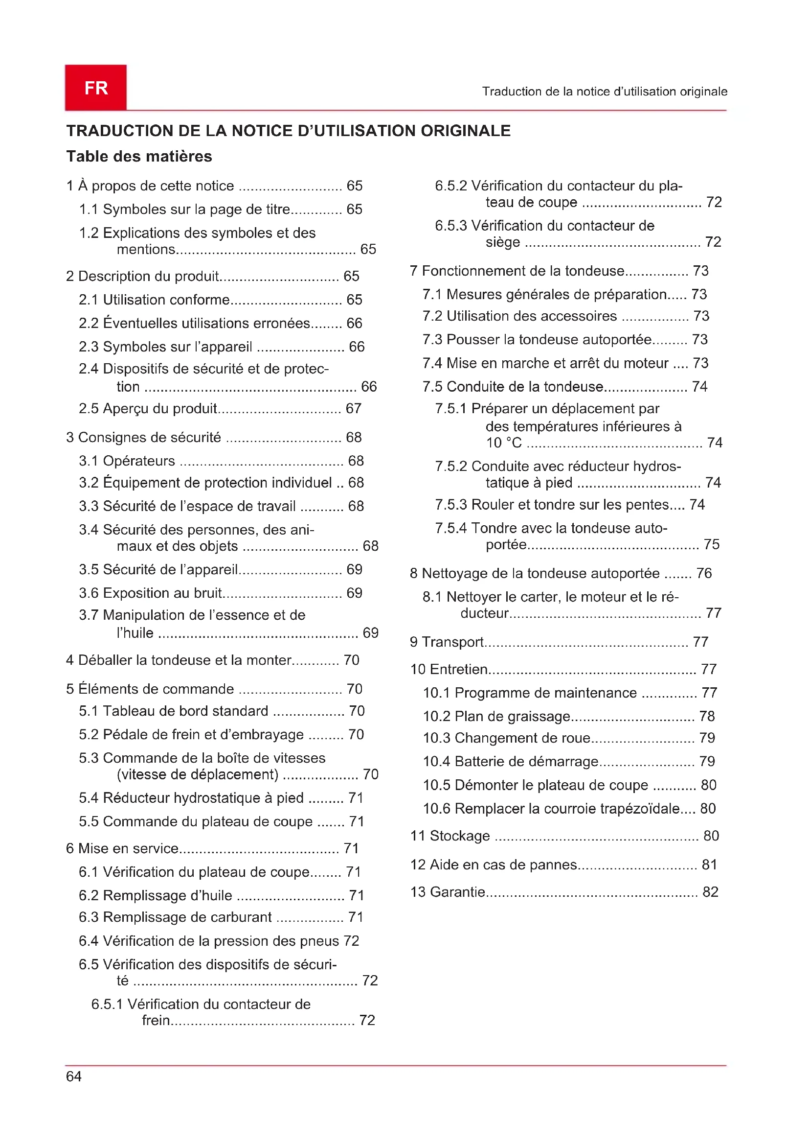 Traduction de la notice d’utilisation originale TRADUCTION DE LA NOTICE D’UTILISATION ORIGINALE Table des matières 1 À propos de cette notice .......................... 65