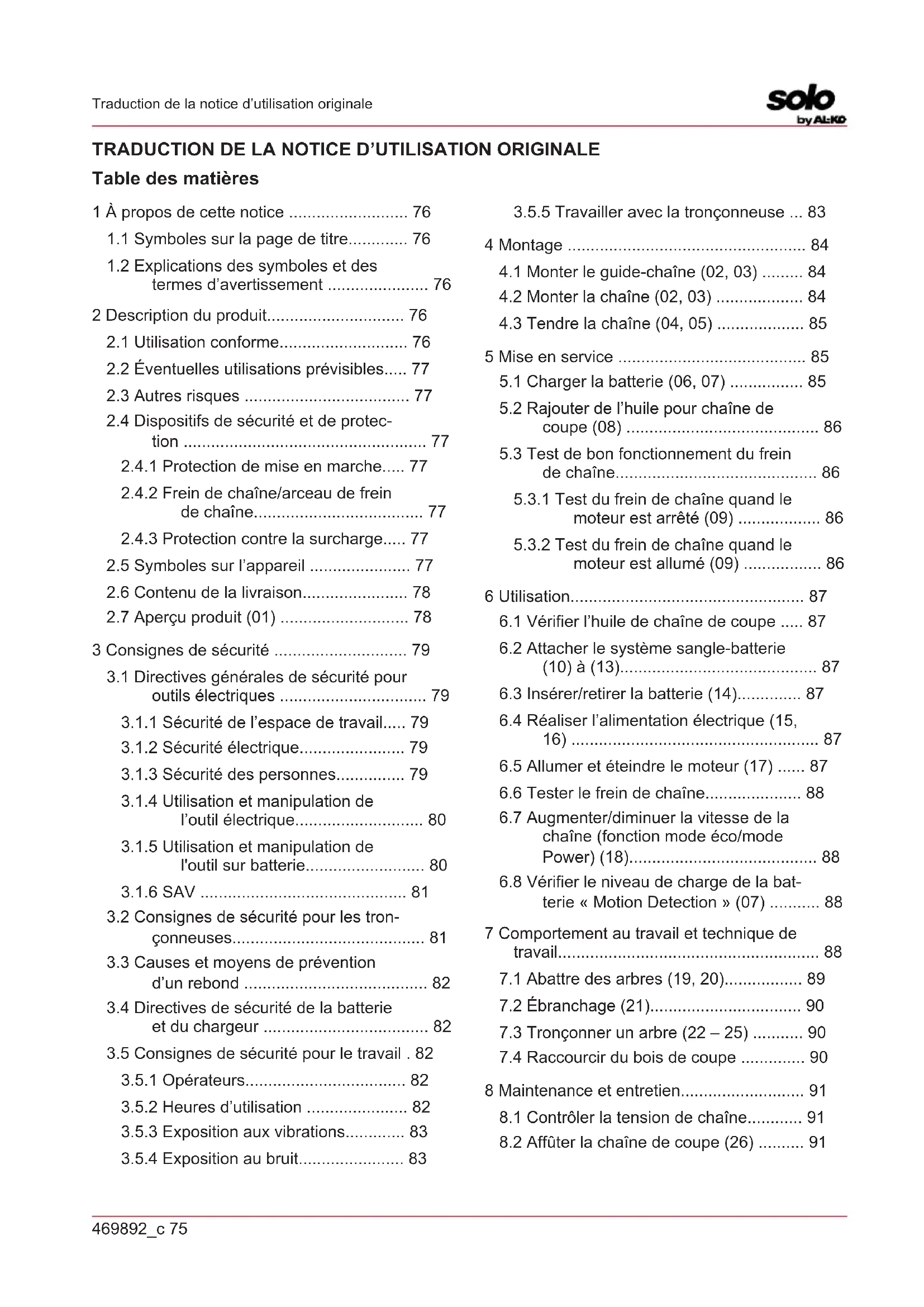 3 Consignes de sécurité ............................. 79