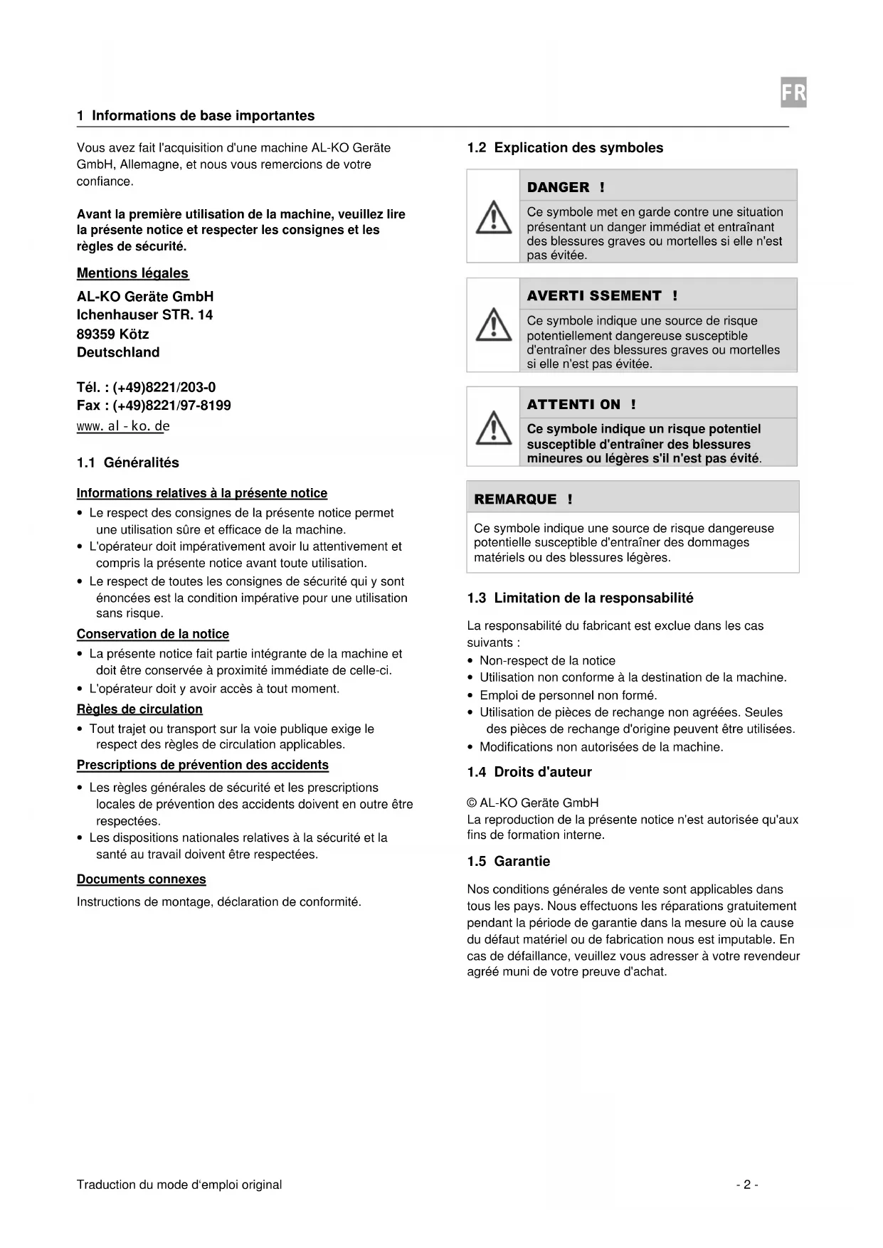 MODE D'EMPLOI Solo FC 1390.5 HD 2WD AL-KO