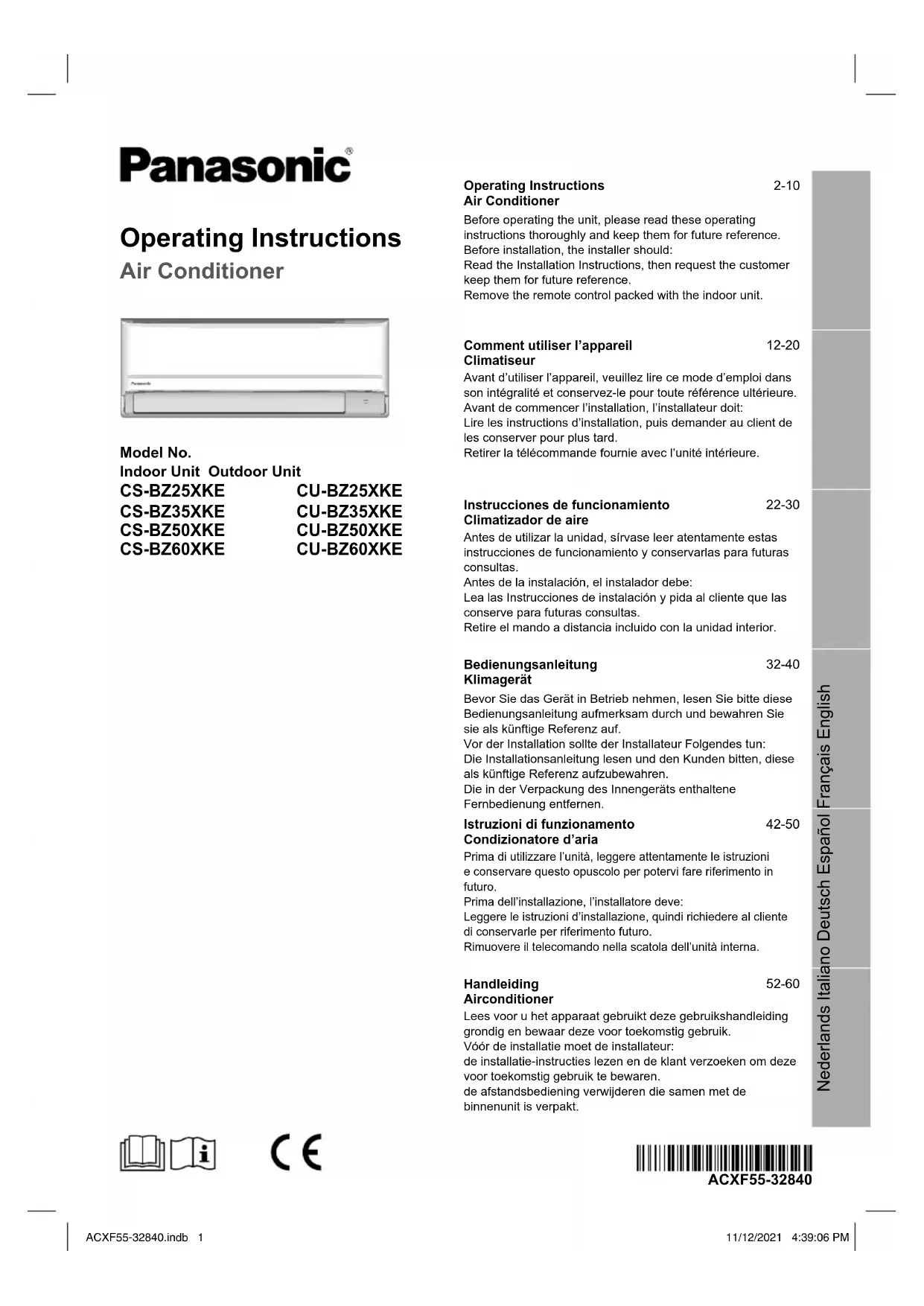 MODE D'EMPLOI CSBZ35XKE PANASONIC