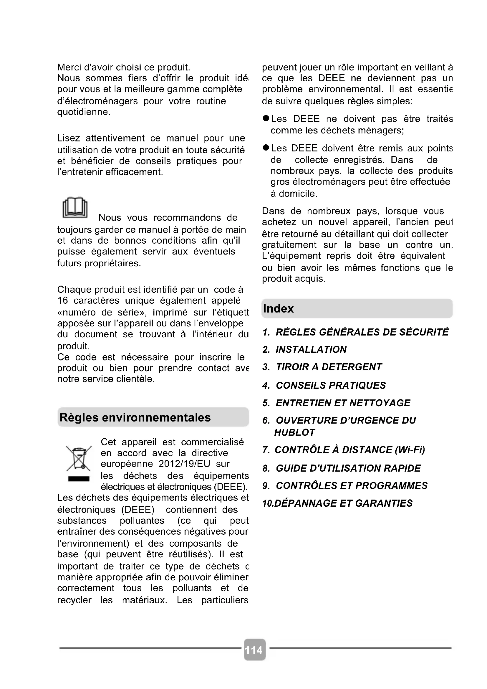 Merci d'avoir choisi ce produit. Nous sommes fiers d’offrir le produit idéal pour vous et la meilleure gamme complète d’électroménagers pour votre routine quotidienne. Lisez attentivement ce manuel pour une utilisation de votre produit en toute sécurité et bénéficier de conseils pratiques pour l’entretenir efficacement. Nous vous recommandons de toujours garder ce manuel à portée de main et dans de bonnes conditions afin qu’il puisse également servir aux éventuels futurs propriétaires. Chaque produit est identifié par un code à 16 caractères unique également appelé «numéro de série», imprimé sur l’étiquette apposée sur l’appareil ou dans l’enveloppe du document se trouvant à l’intérieur du produit. Ce code est nécessaire pour inscrire le produit ou bien pour prendre contact avec notre service clientèle.