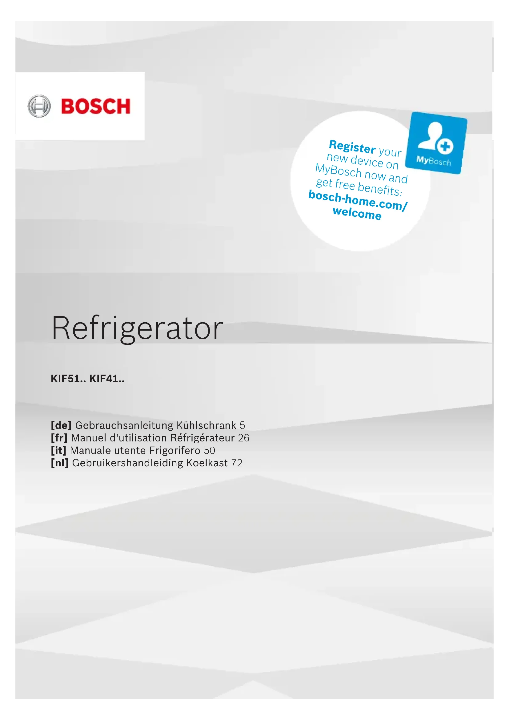 Retrouvez gratuitement la notice de l'appareil KIF41SDE1 BOSCH au format PDF.