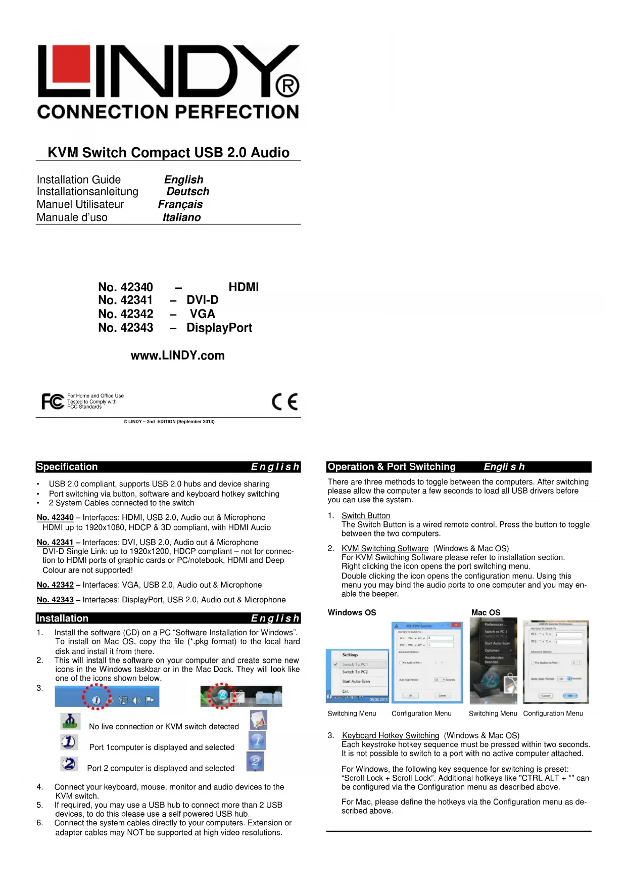 42340 - Commutateur Lindy - Notice d'utilisation et mode d'emploi gratuit