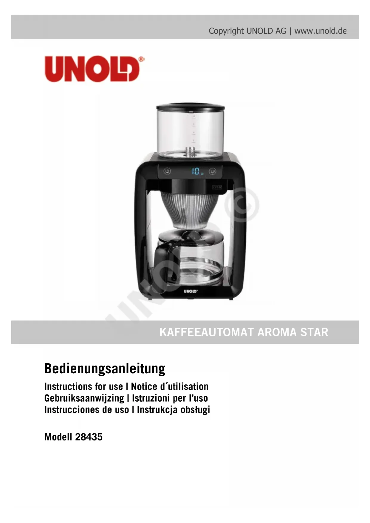 Retrouvez gratuitement la notice de l'appareil Aroma Star 28435 UNOLD au format PDF.
