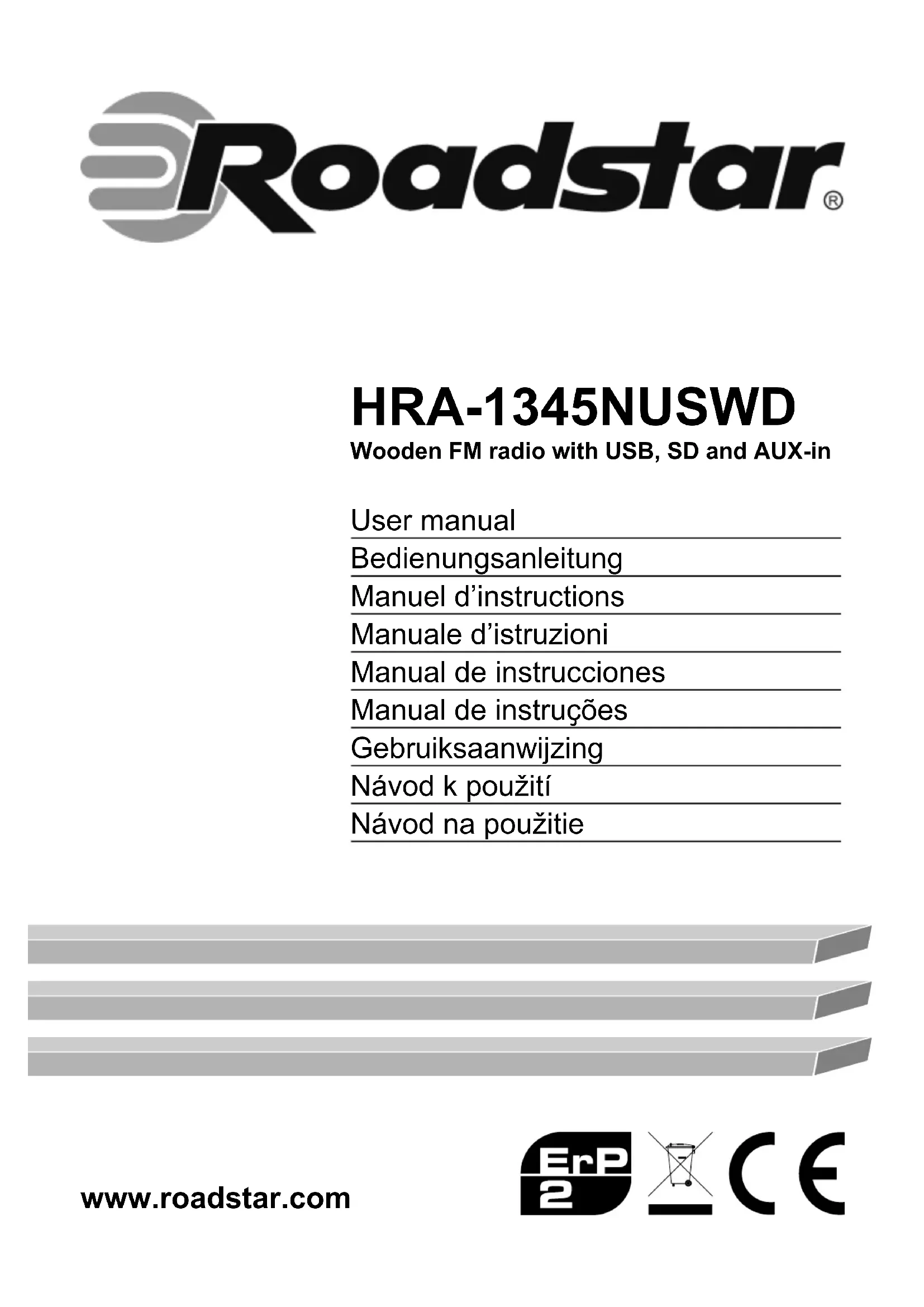 HRA1345NUSWD - Radio ROADSTAR - Notice d'utilisation et mode d'emploi gratuit