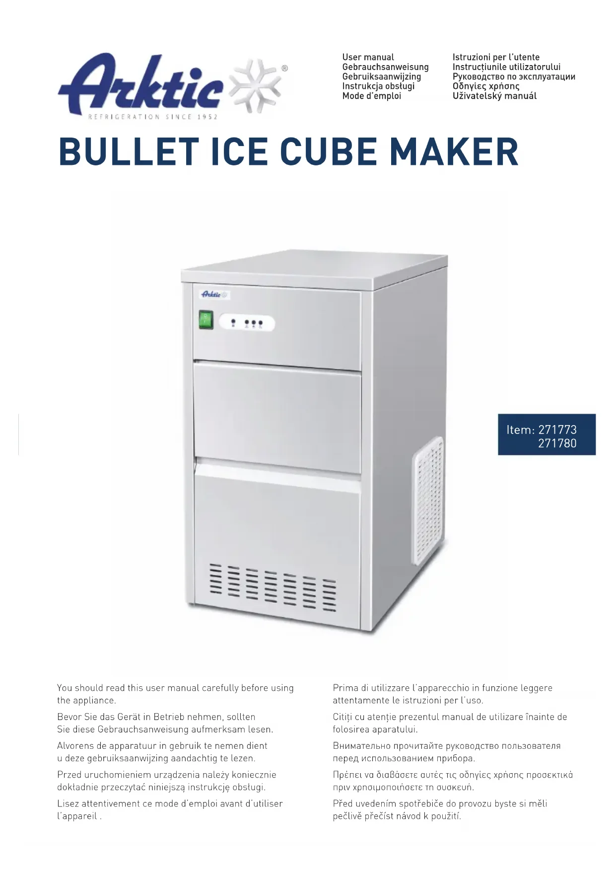 271773 - Machine à glaçons Arktic - Notice d'utilisation et mode d'emploi gratuit