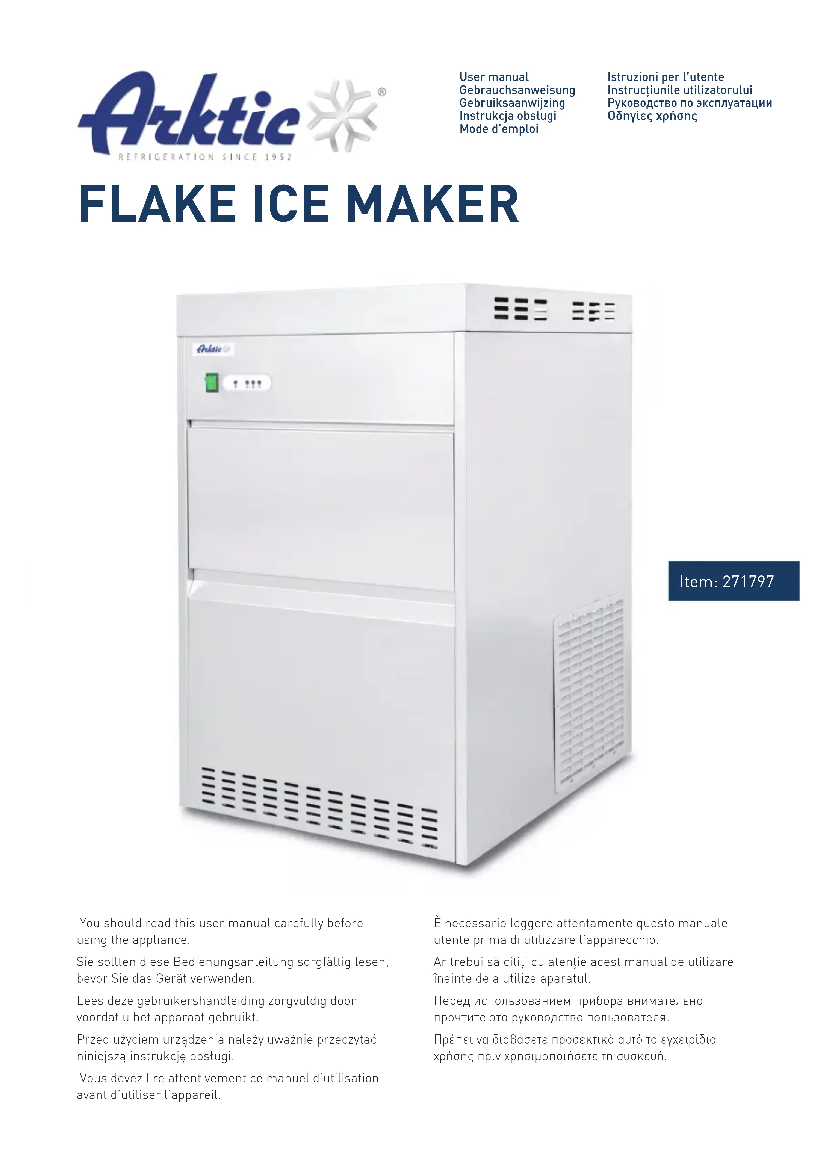 271797 - Machine à glaçons Arktic - Notice d'utilisation et mode d'emploi gratuit