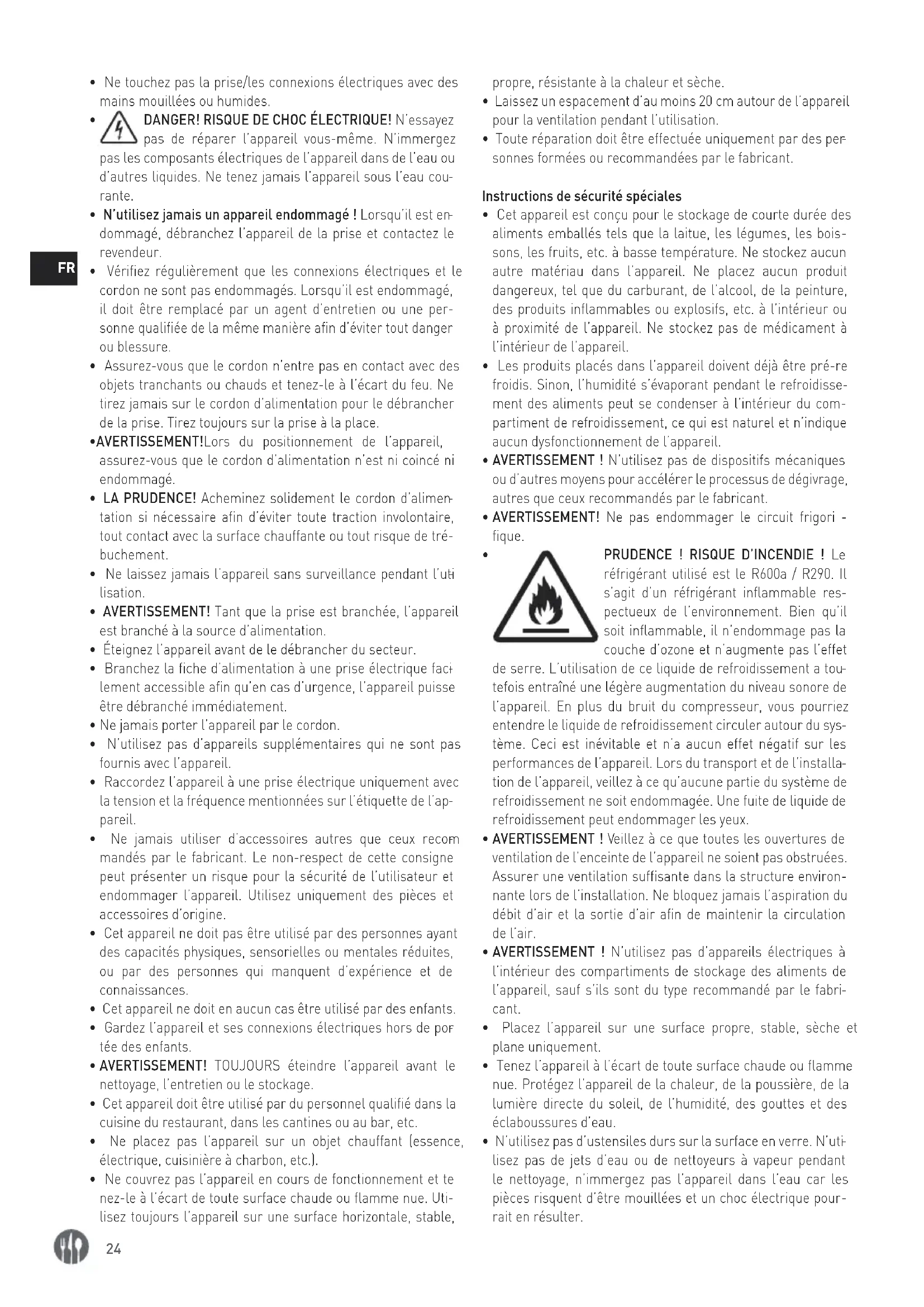 PRUDENCE ! RISQUE D’INCENDIE ! Le réfrigérant utilisé est le R600a / R290. Il s’agit d’un réfrigérant inflammable res