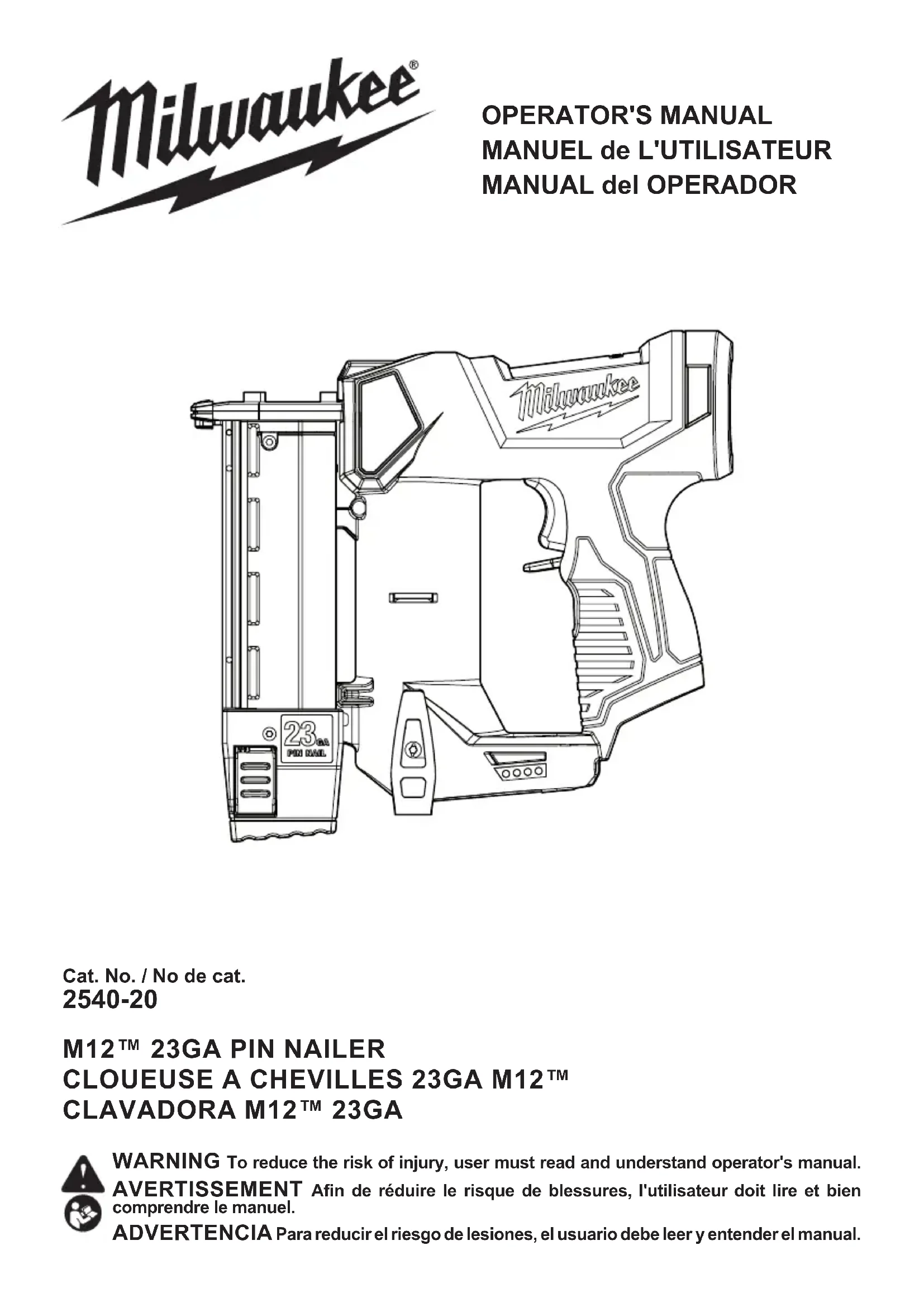 M12 254021 - Agrafeuse MILWAUKEE - Notice d'utilisation et mode d'emploi gratuit